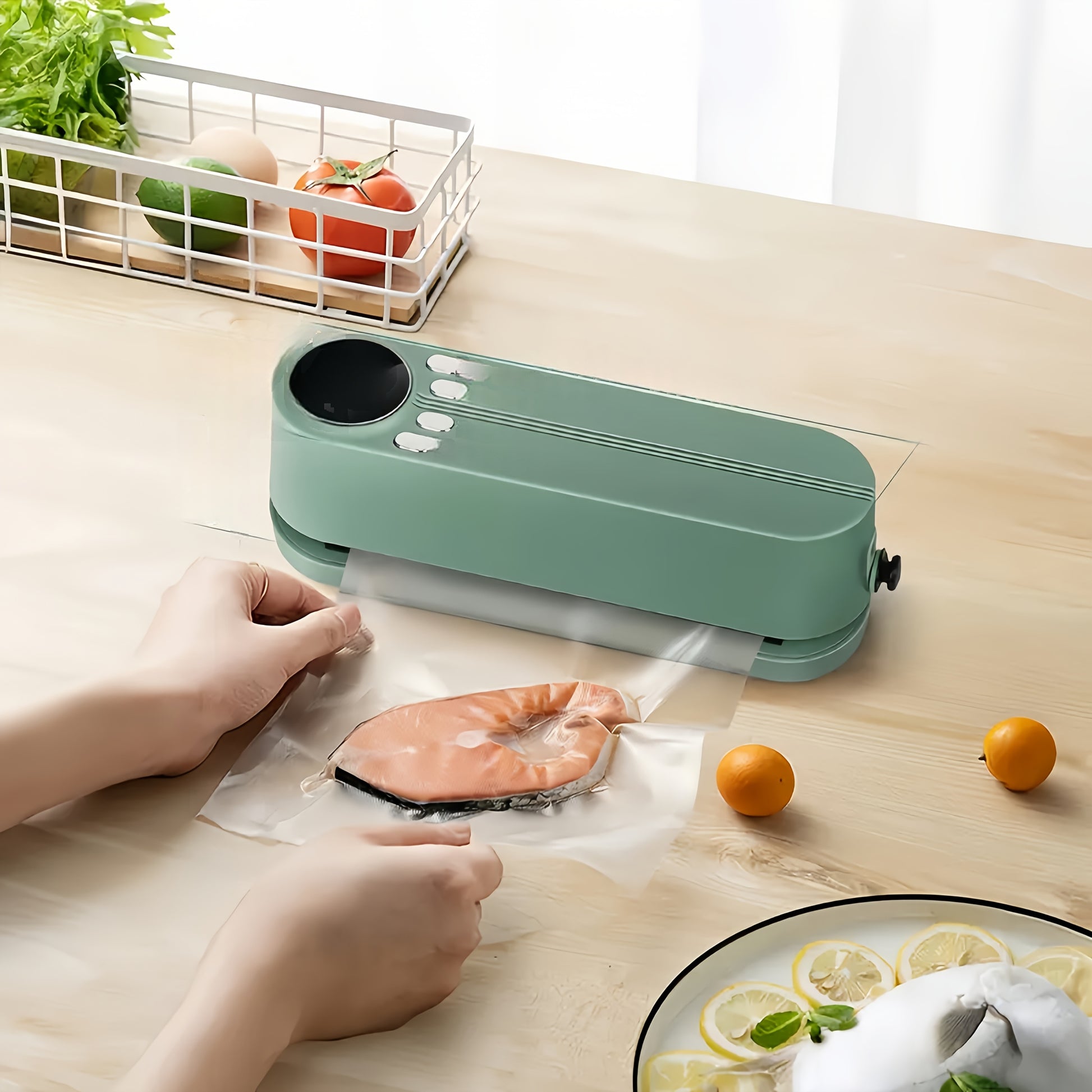 Selladora al vacío portátil con operación manual y batería recargable por USB para uso en la cocina