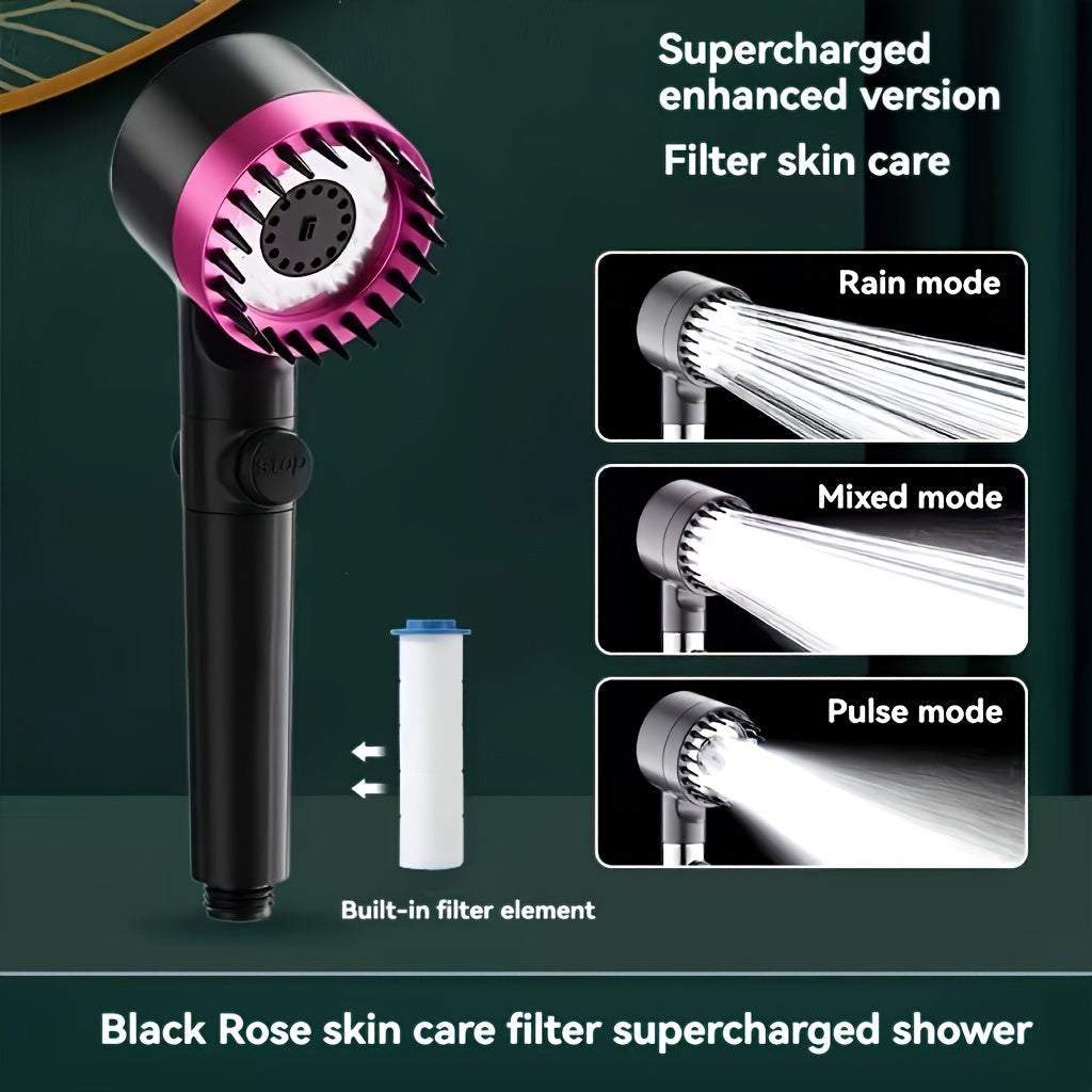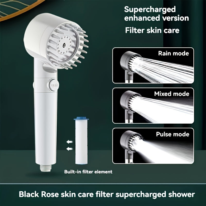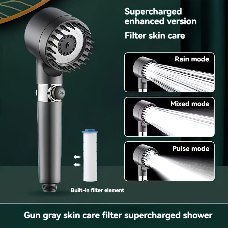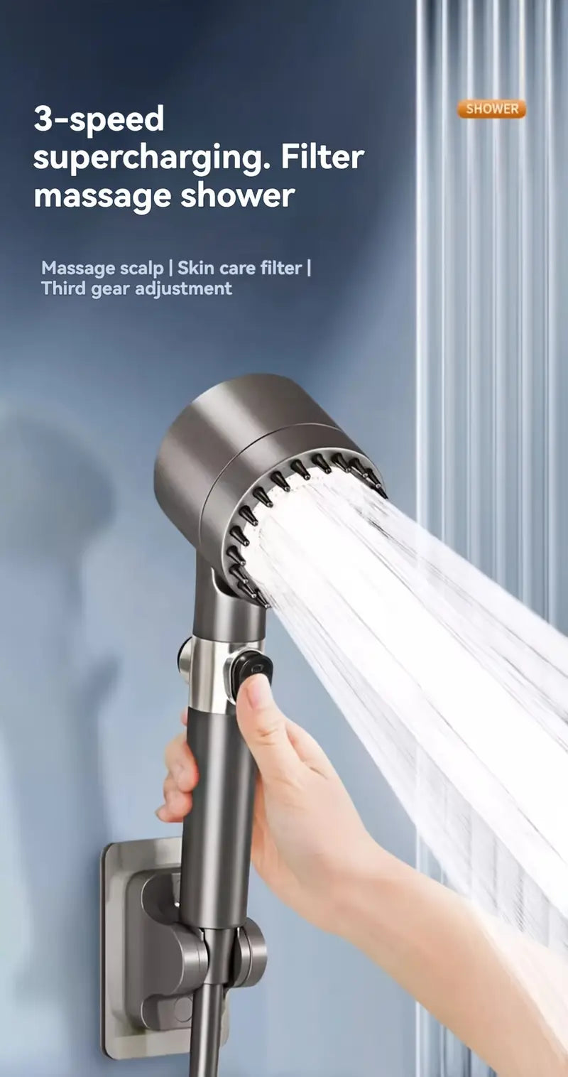 Cabezal de ducha de alta presión ajustable con panel de acero inoxidable de un toque para detener el agua