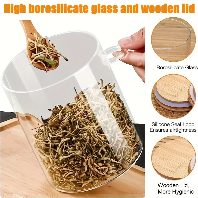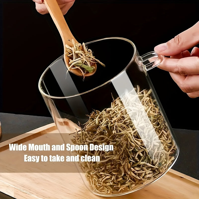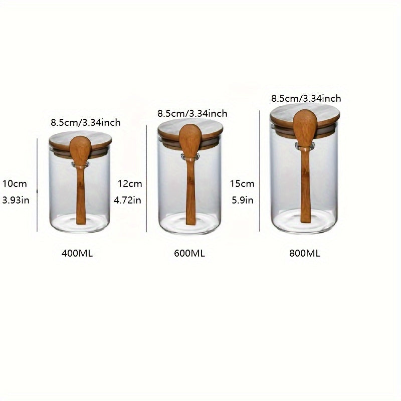 Tarro de almacenamiento de vidrio hermético con tapa de bambú y cuchara para especias de cocina, arroz, café, caramelos
