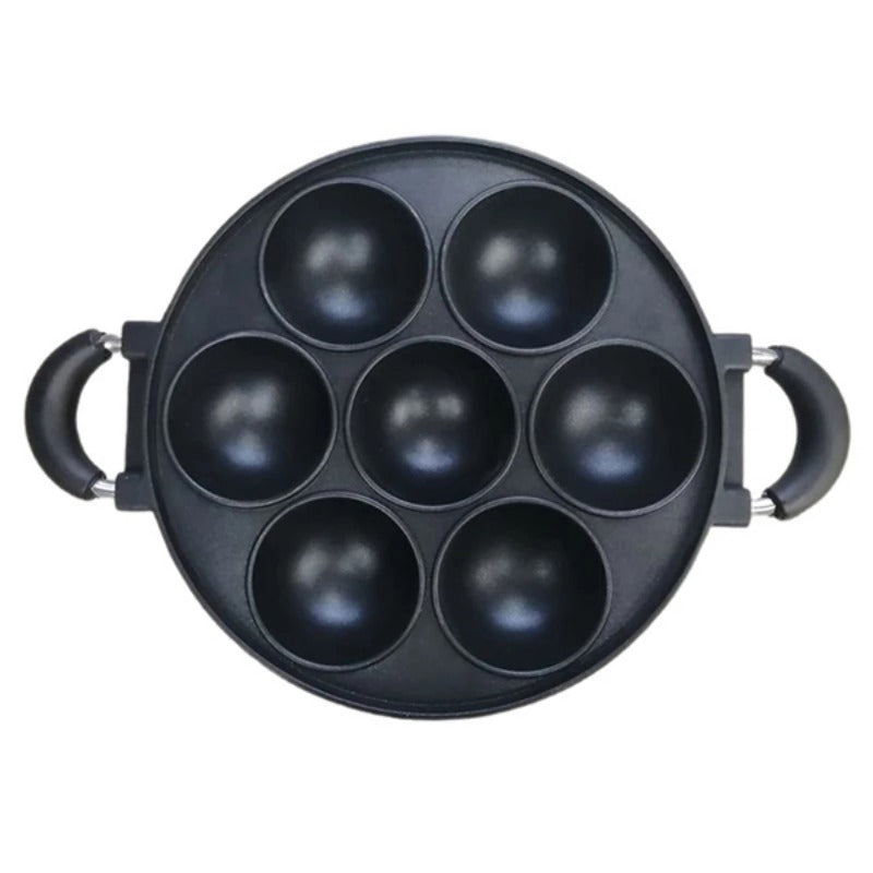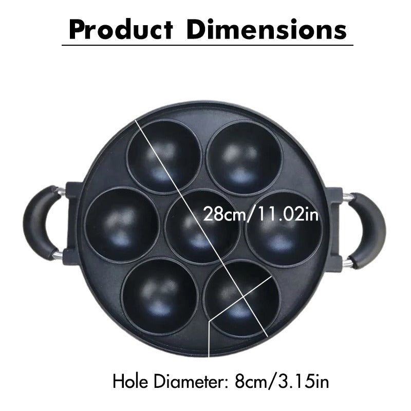 Sartén de aluminio para tortilla con 7 agujeros, recubrimiento antiadherente, mango y molde para pastel
