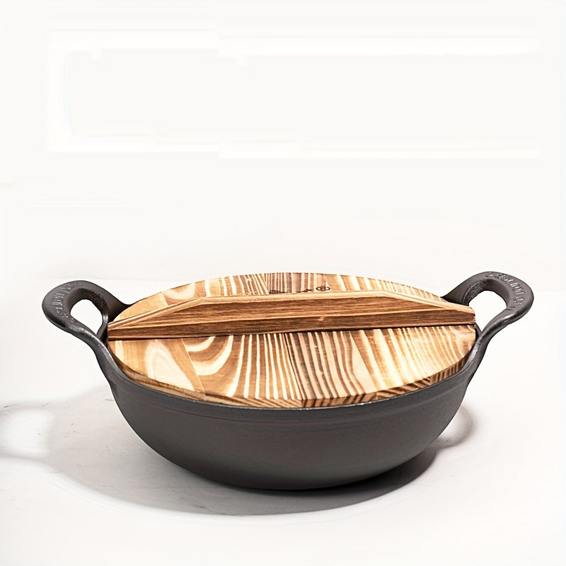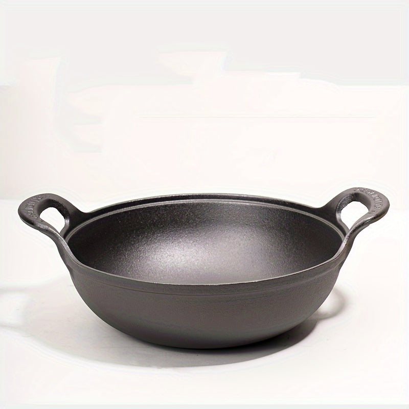Wok chino de hierro fundido y sartén para saltear duradera, utensilios de cocina de hierro sin recubrimiento