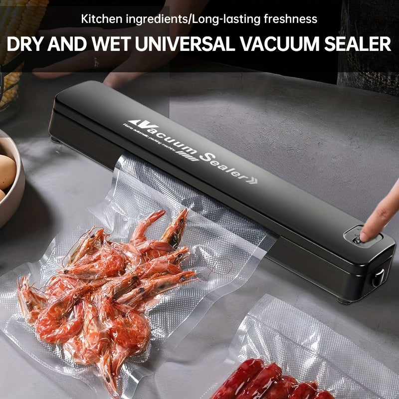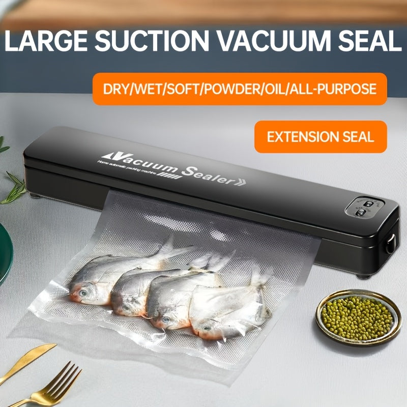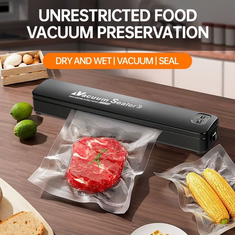 Máquina selladora automática de vacío para conservación de alimentos 50 bolsas compacta negra
