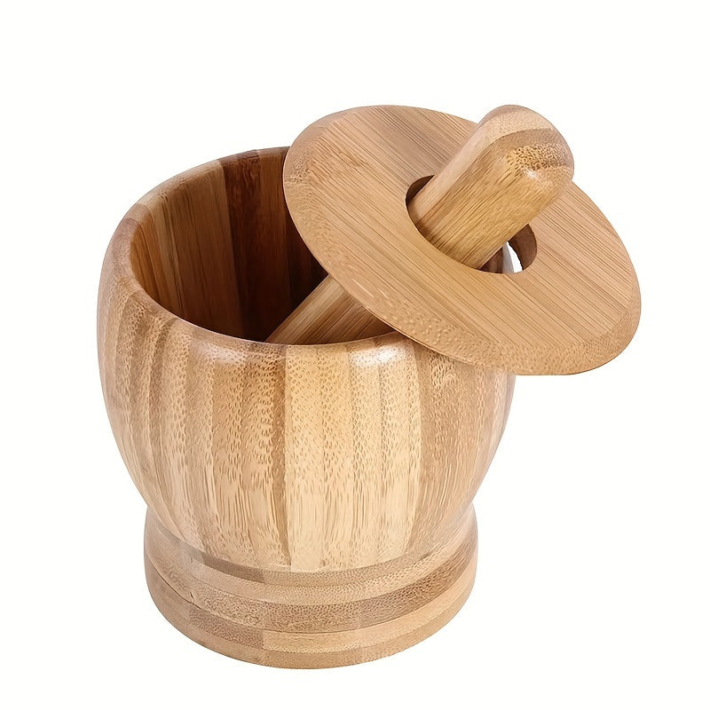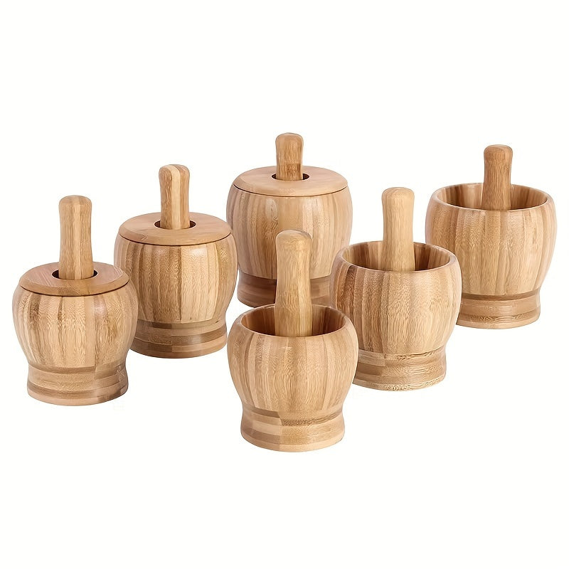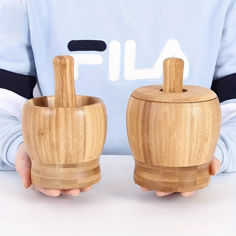 Juego de mortero y maja de bambú para ajo, hierbas y especias, herramienta de cocina