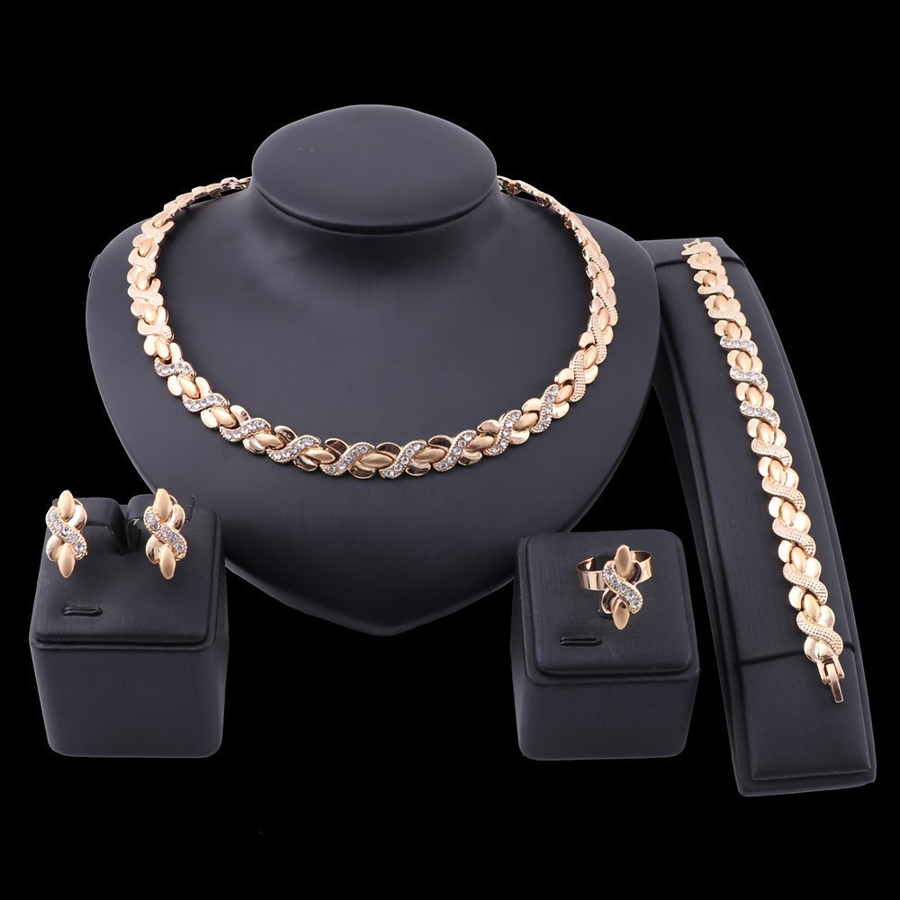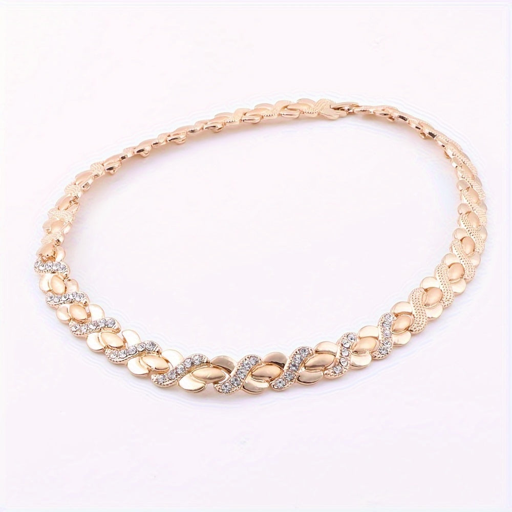 Conjunto de joyería en tono dorado para mujer: collar, pendientes, pulsera y anillo para bodas y eventos