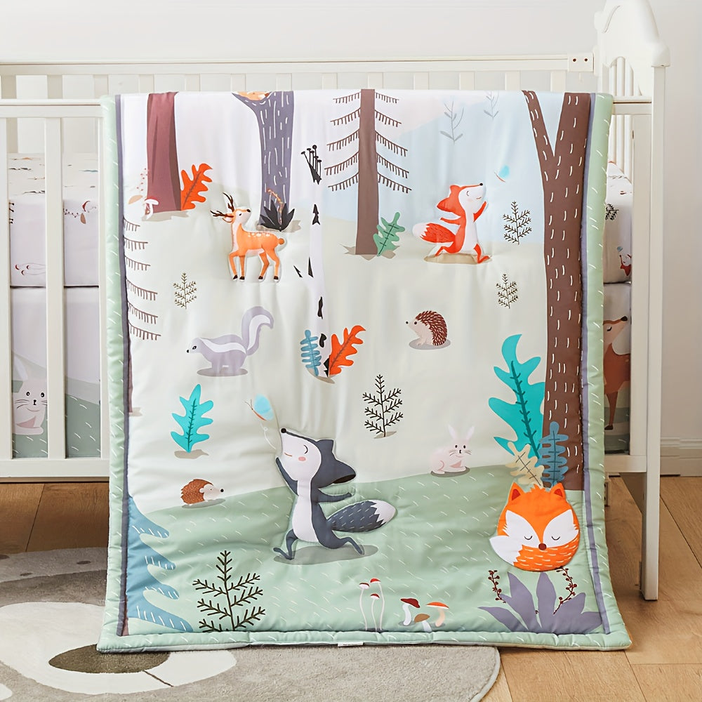 Manta de cuna con estampado de animales del bosque para niños, transpirable, poliéster para todas las estaciones, ultra acogedora