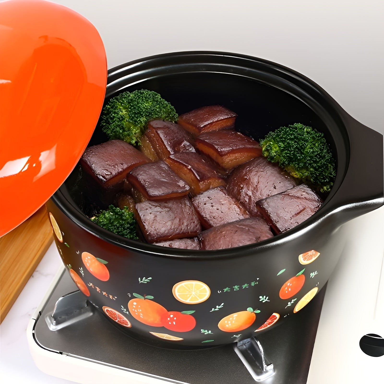 Gran cazuela de cerámica ovalada para sopas y guisos, para cocinas de gas e inducción