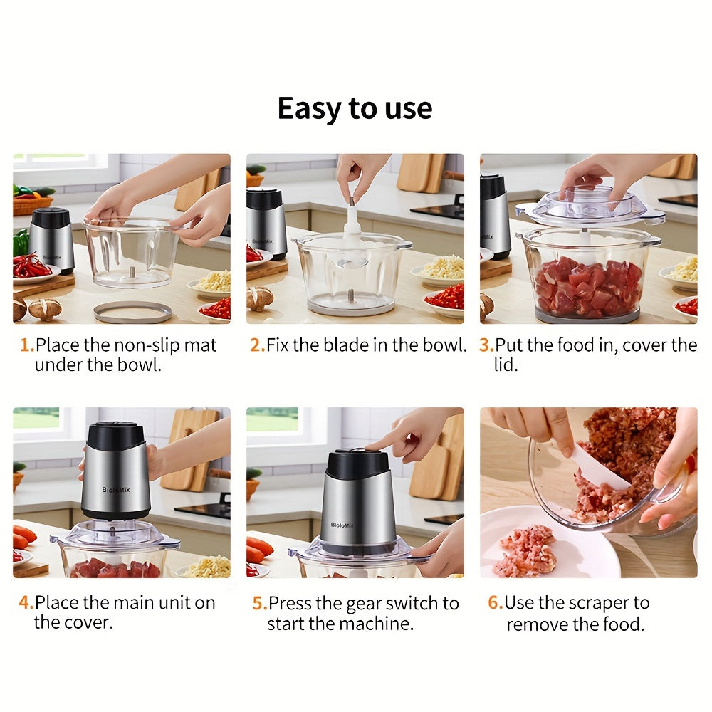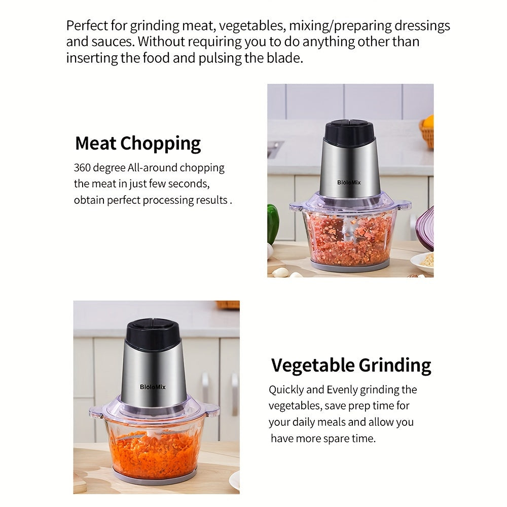 Procesador de alimentos de 500W con picadora de carne, cuenco de vidrio de 1.8L, cuchillas adicionales, enchufe EU