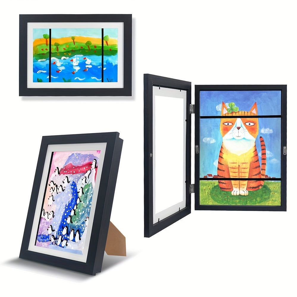 Marco de galería negro para obras de arte, montaje vertical o en pared, respaldo de caballete