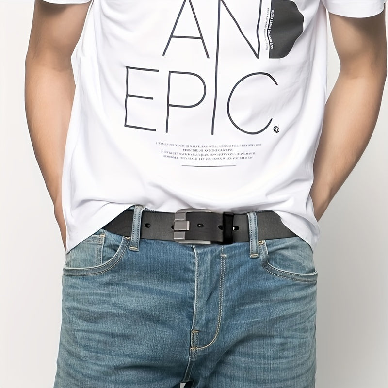 Cinturón de cuero PU negro con hebilla cuadrada de aleación para hombres casuales y de negocios