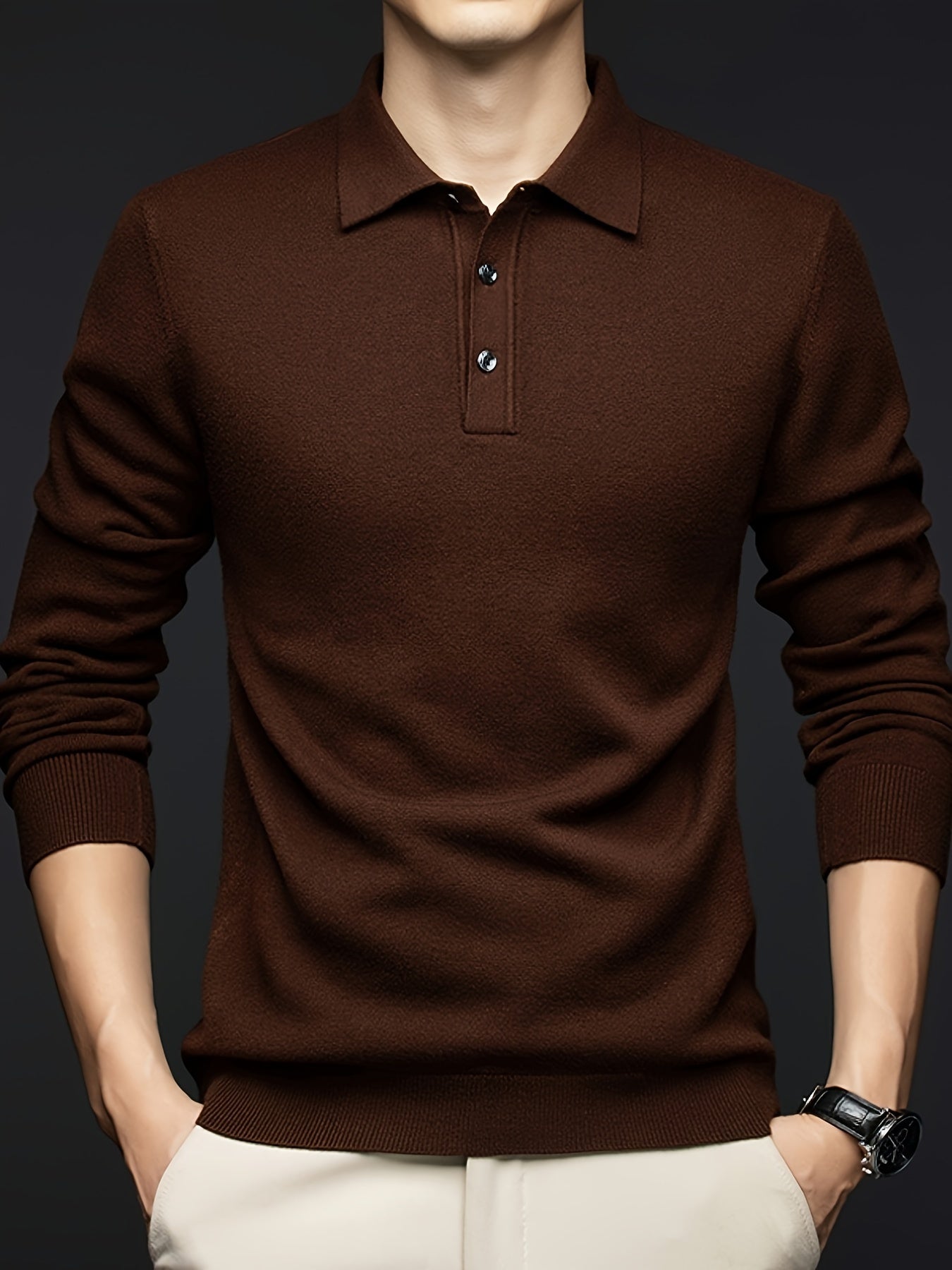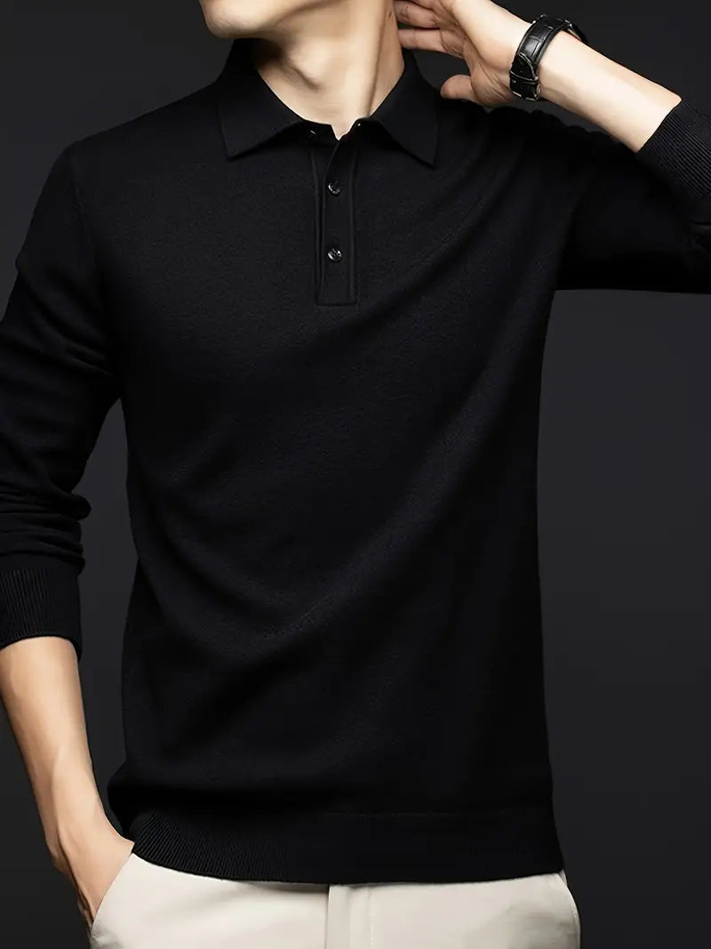 Suéter para hombre de mezcla de lana negra con detalle de botones para otoño e invierno, casual, golf