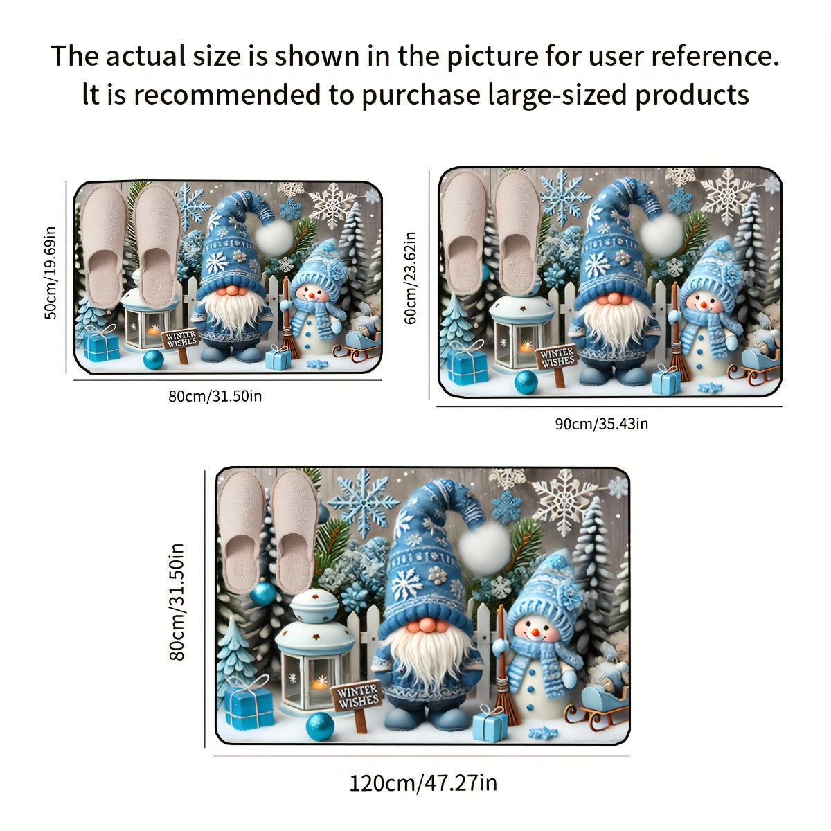 Alfombra de puerta de terciopelo de cristal con gnomo de Navidad azul para decoración de invierno en el hogar
