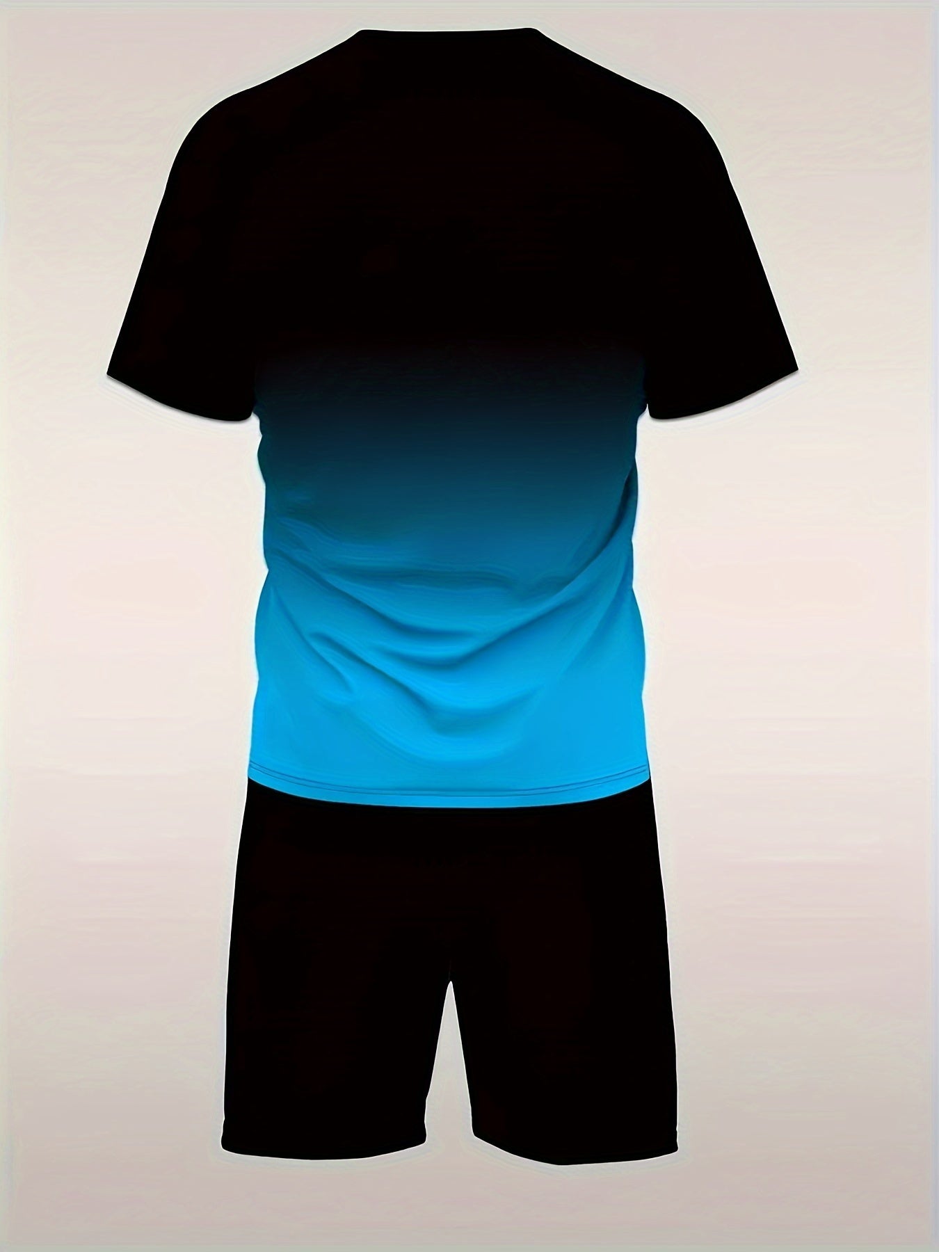 Traje deportivo casual para hombre de manga corta con estampado en toda la prenda de punto de poliéster para verano