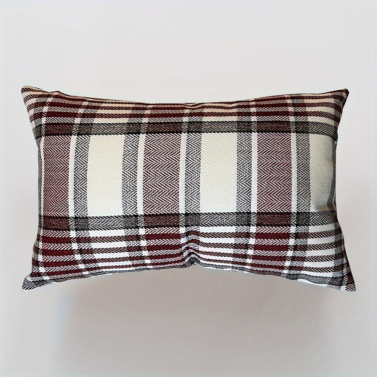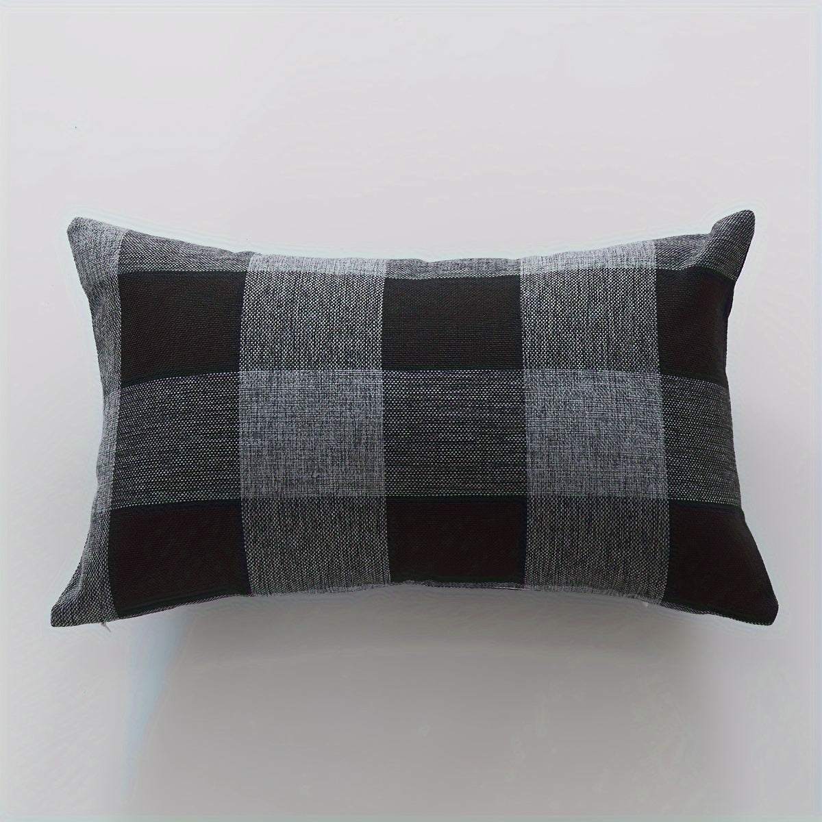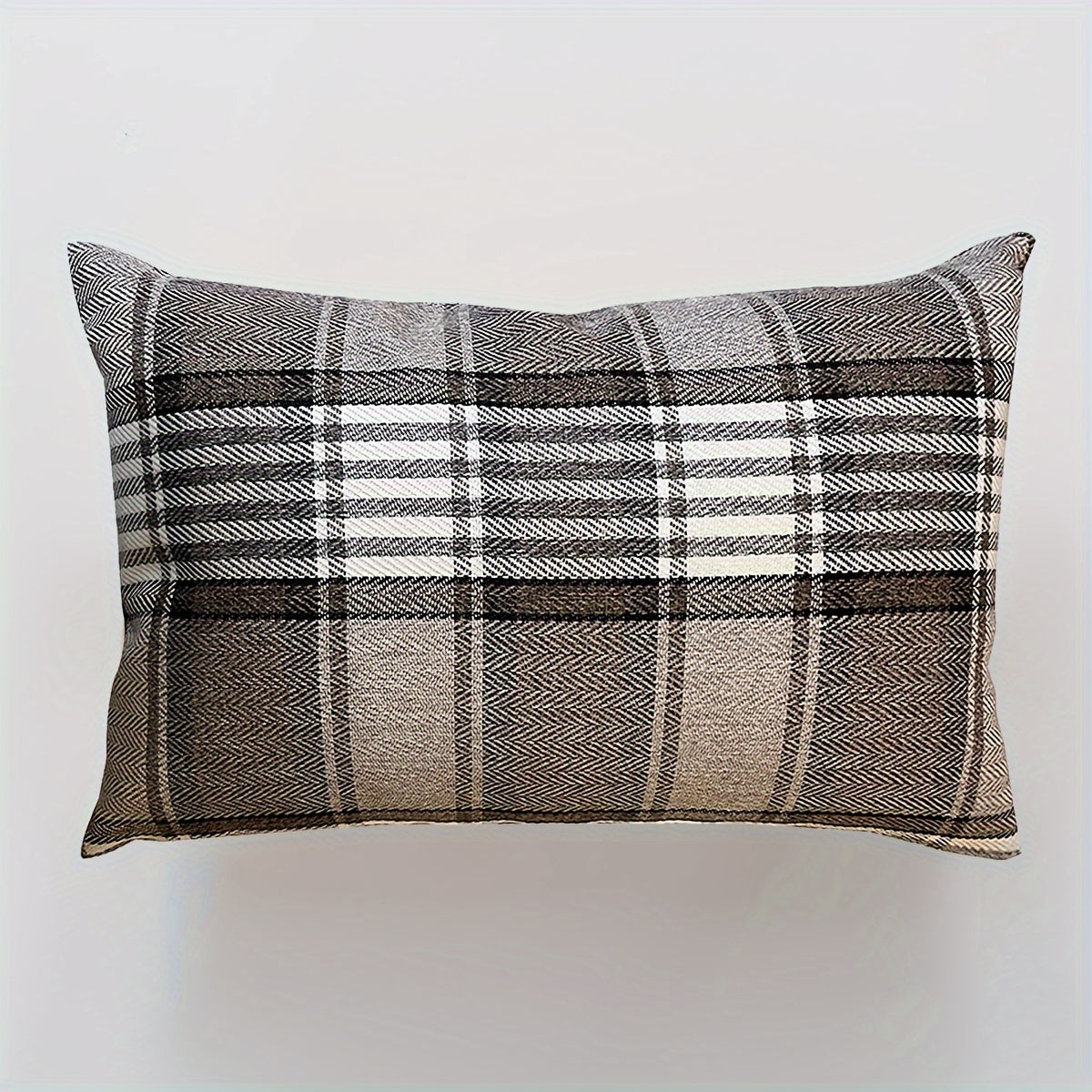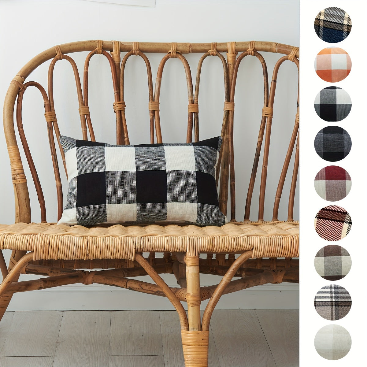 Funda de cojín de lino y algodón bohemio con cuadros tejidos y rayas 50x30cm, cojín lumbar