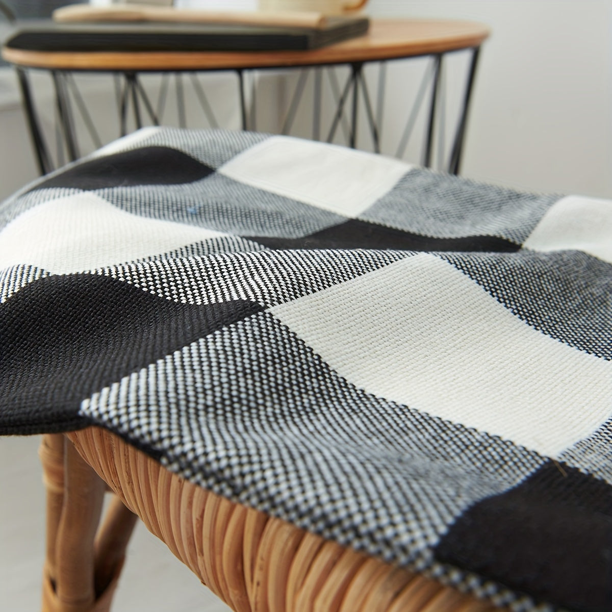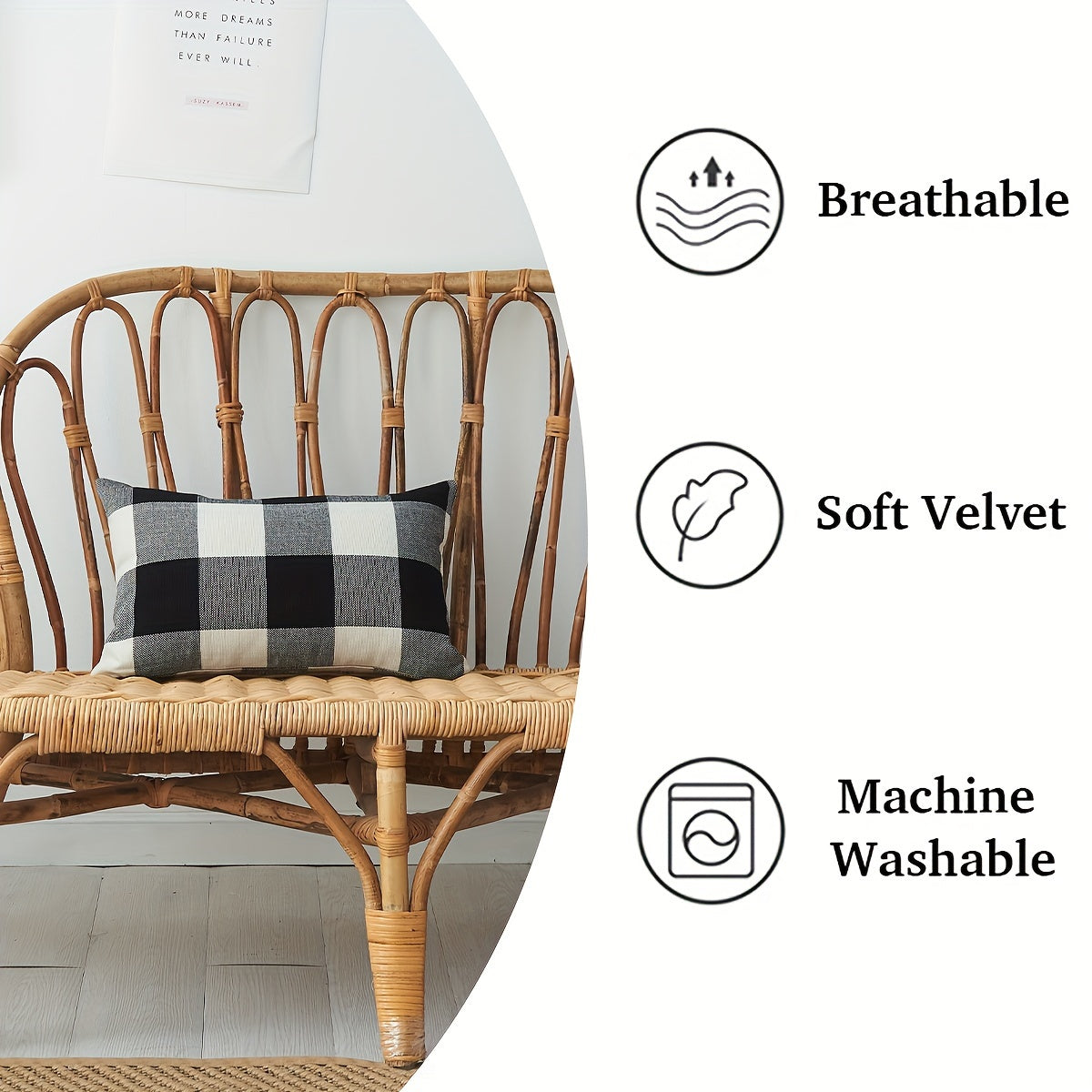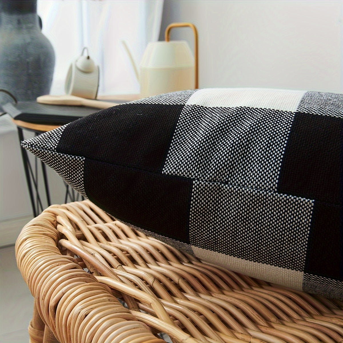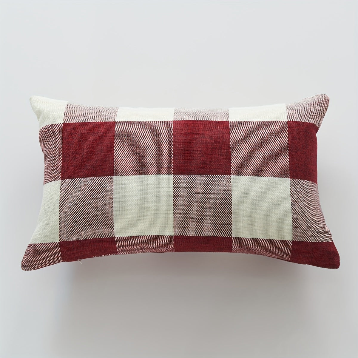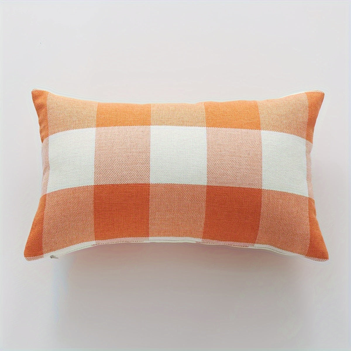 Funda de cojín de lino y algodón bohemio con cuadros tejidos y rayas 50x30cm, cojín lumbar