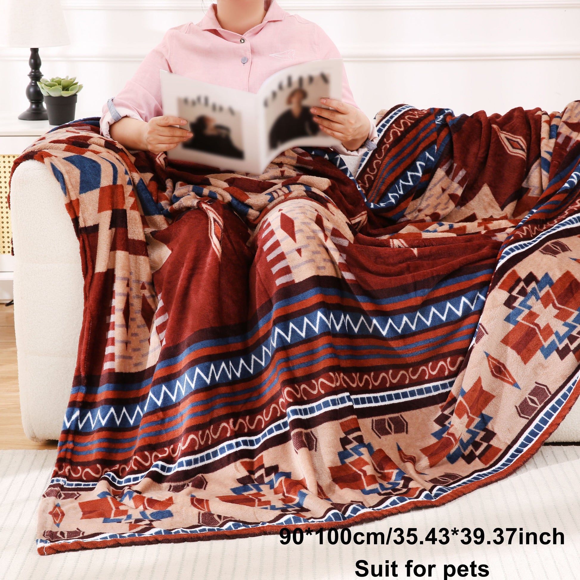 Manta de franela boho-chic de 200GSM suave, cálida y ligera para sofá, cama y viajes