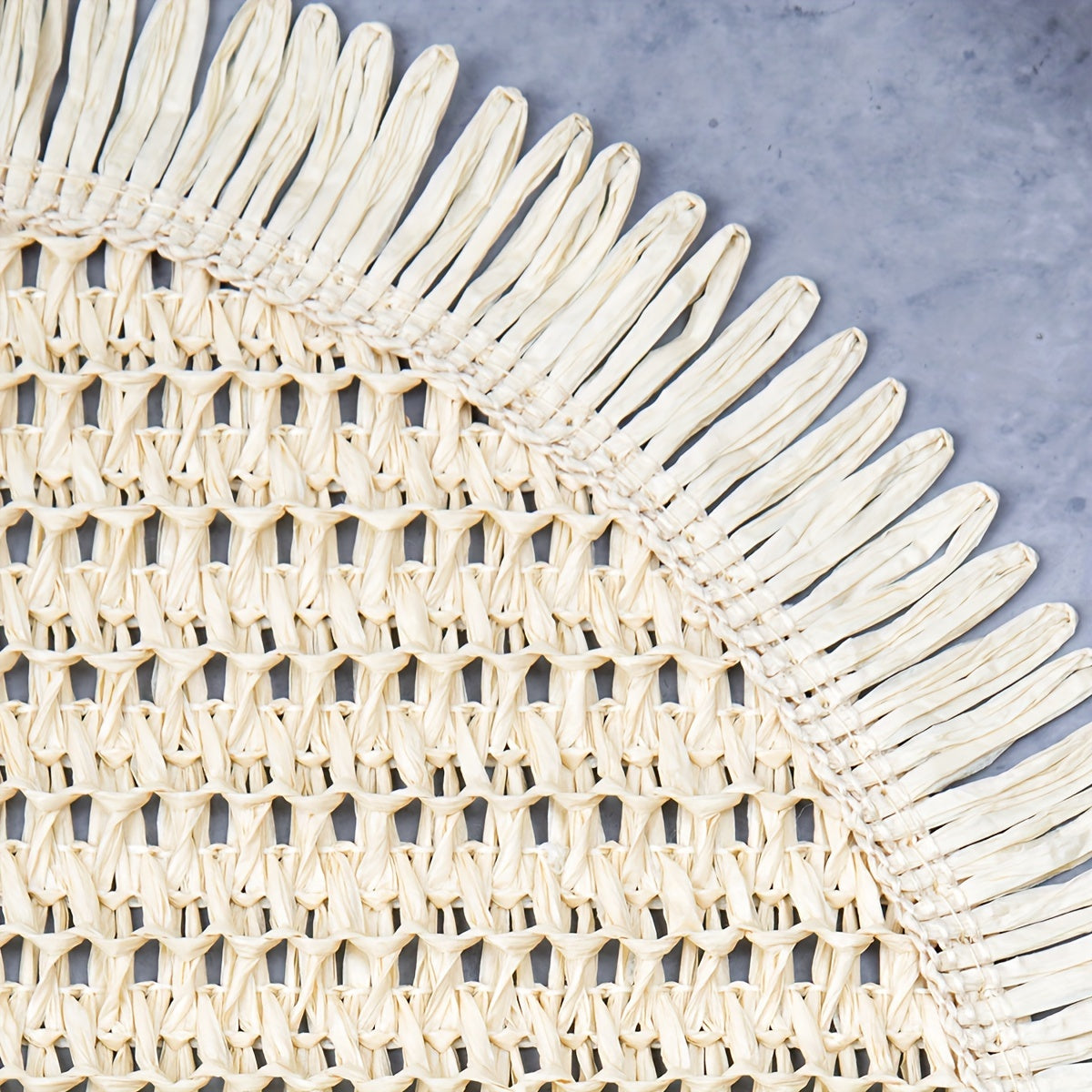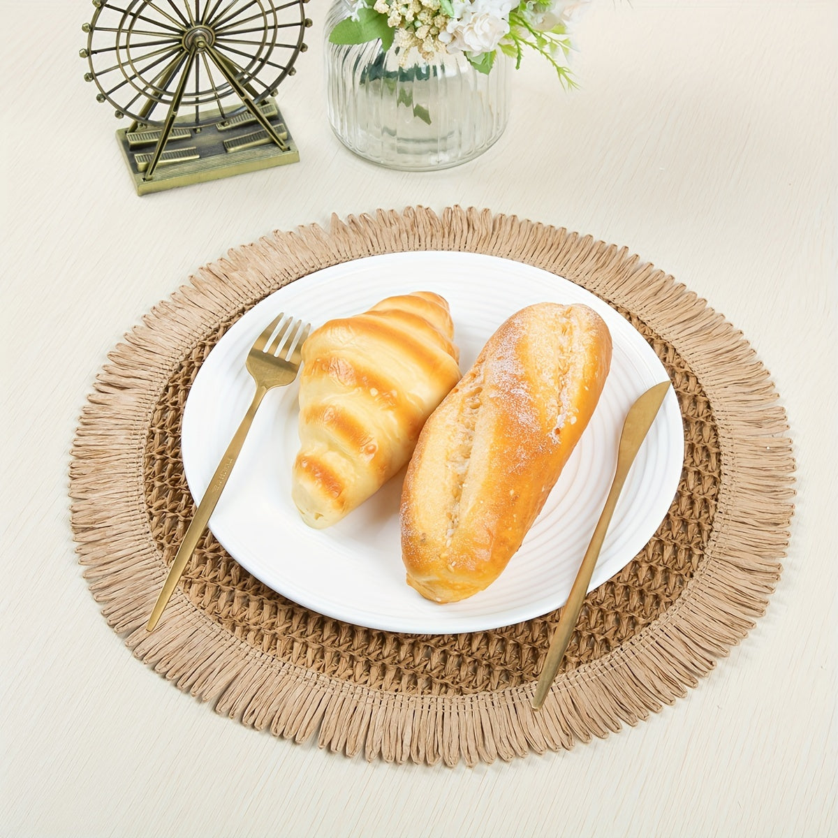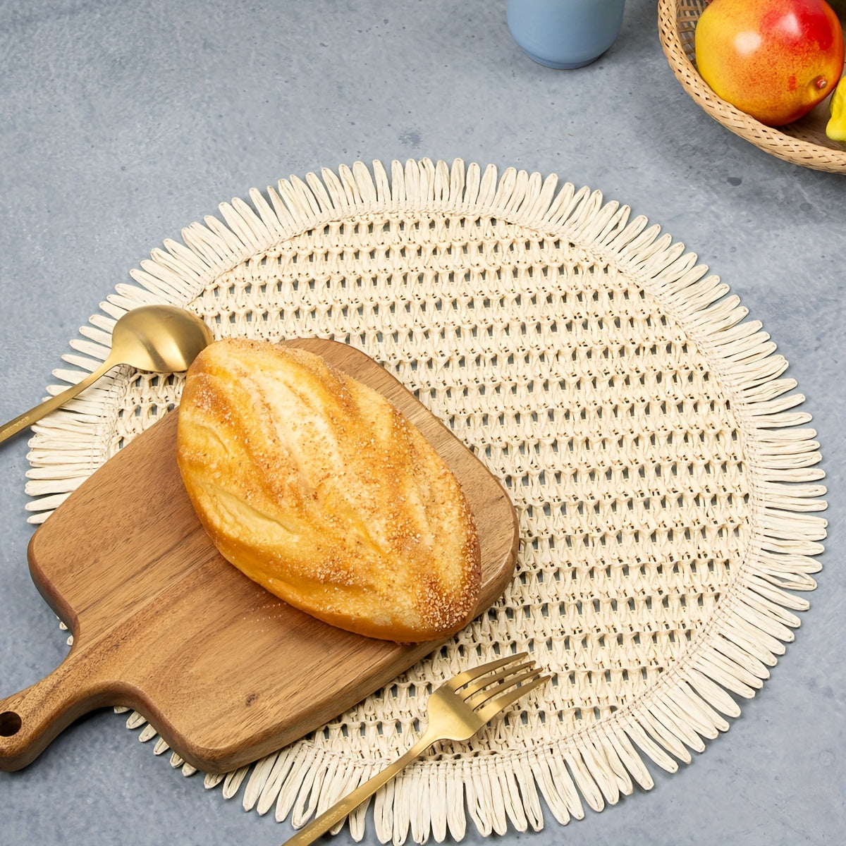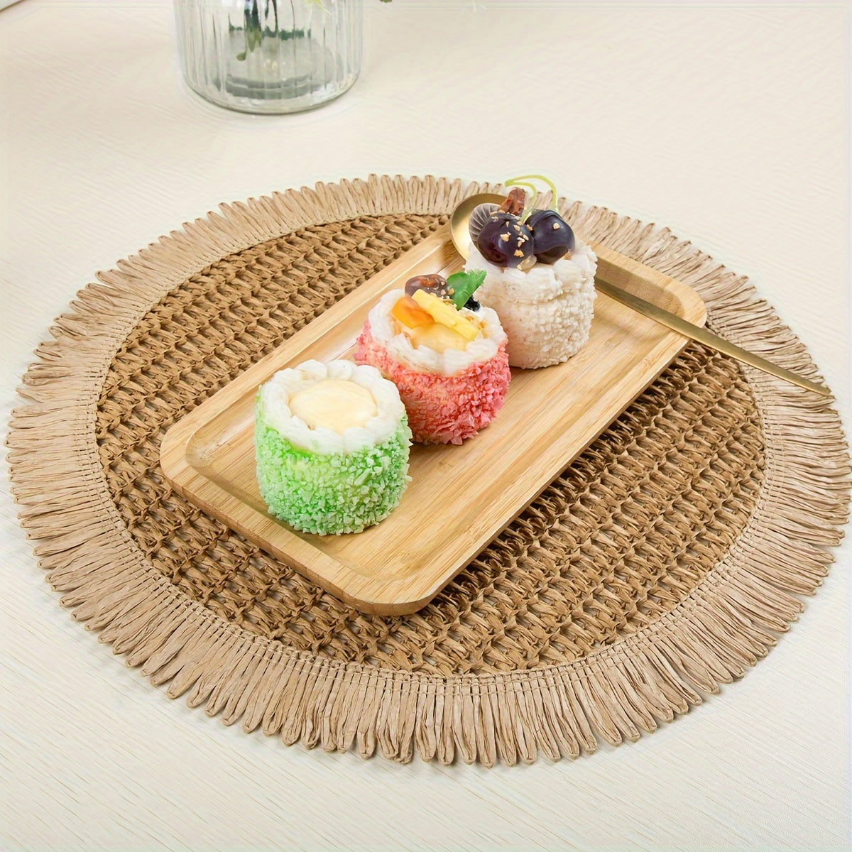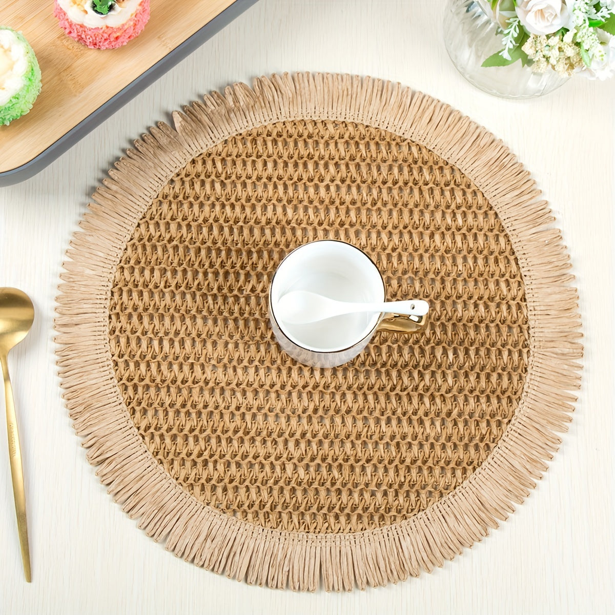 Individual de yute redondo con flecos, tapete rústico de granja para mesa, para comer en interiores y exteriores