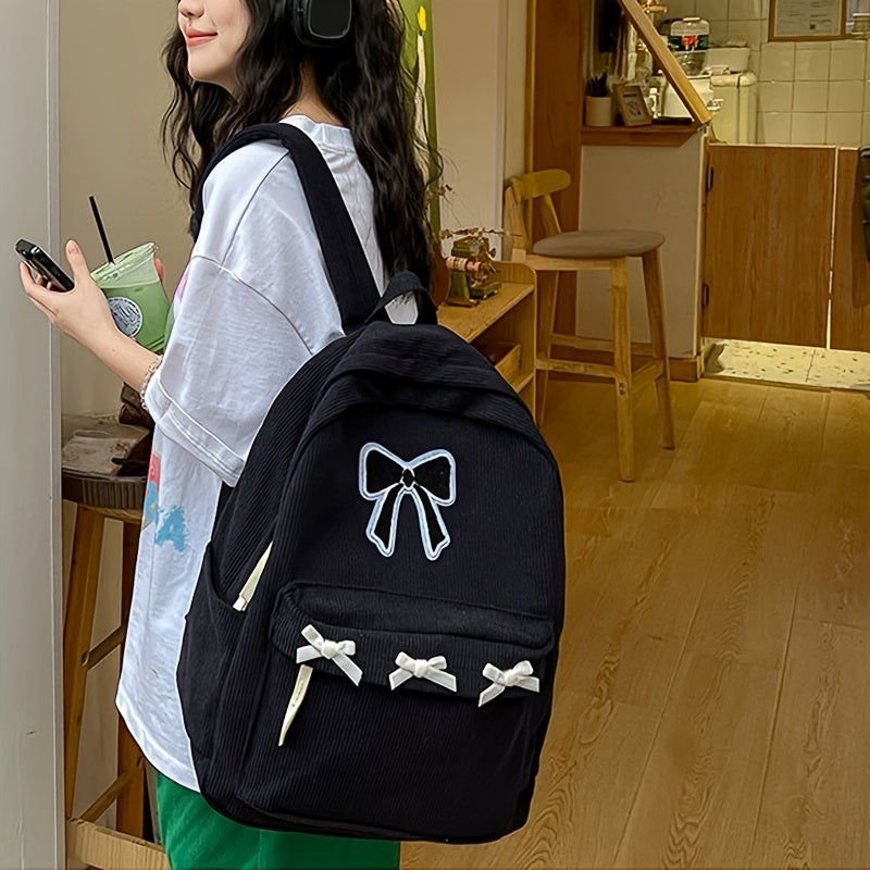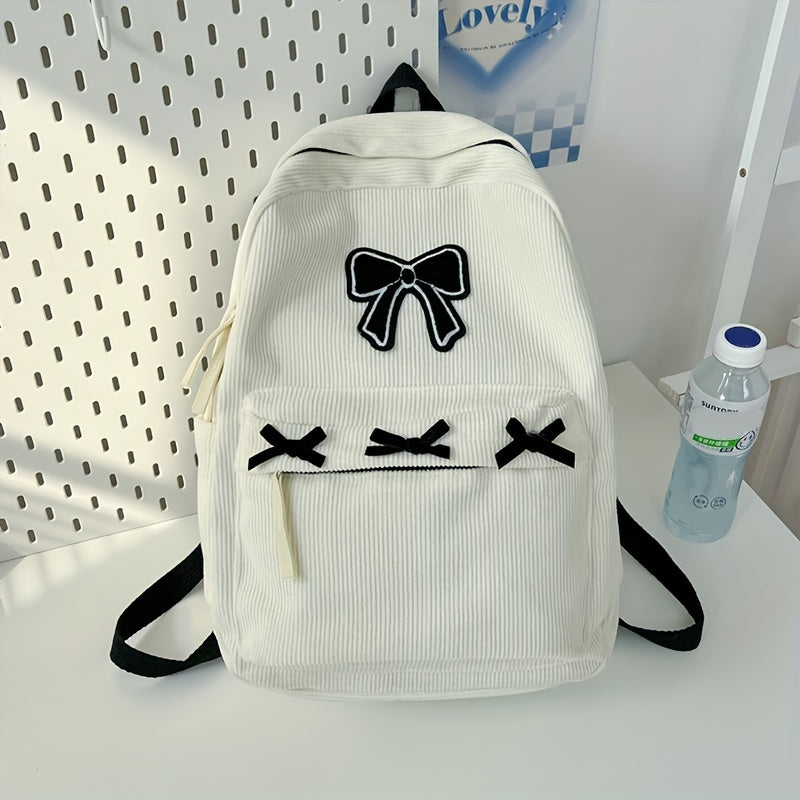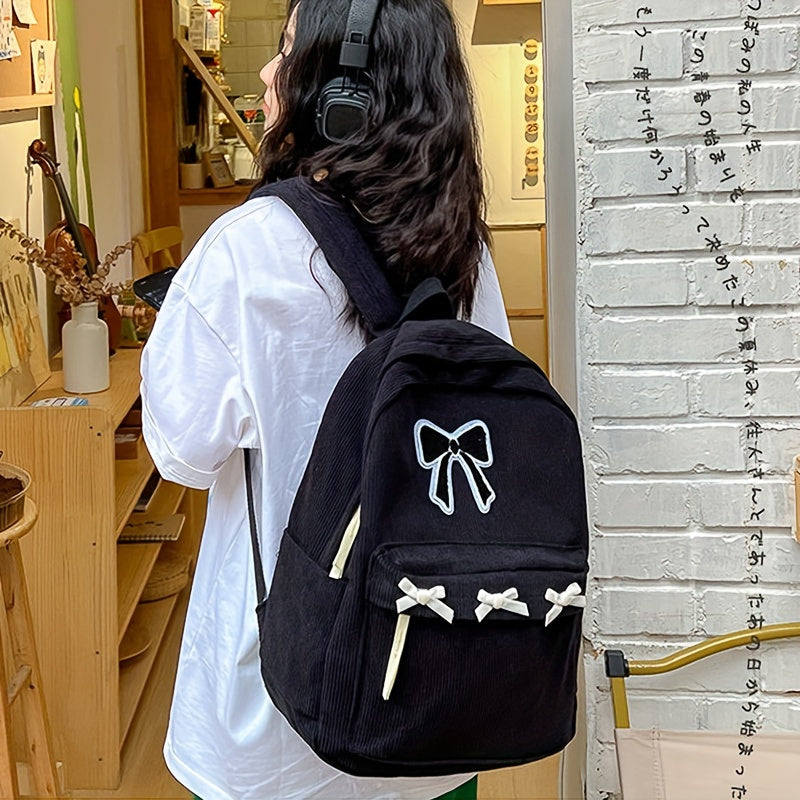 Gran capacidad de corduroy con lazo decoración mochila casual para uso diario