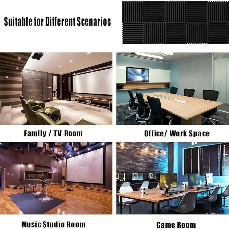 Juego de 12 paneles de espuma acústica negra de 2.54cm x 30.48cm para absorción de sonido y reducción de reverberación