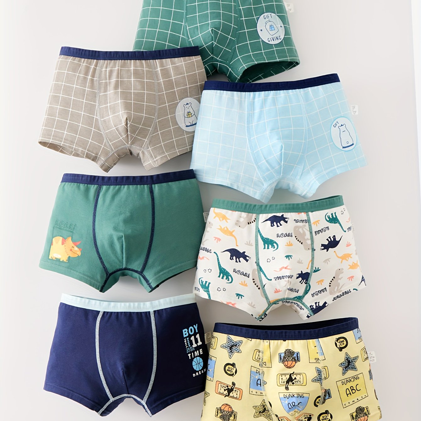 Pack de 7 bóxers de dinosaurios de dibujos animados para niños de algodón y spandex, para todas las estaciones