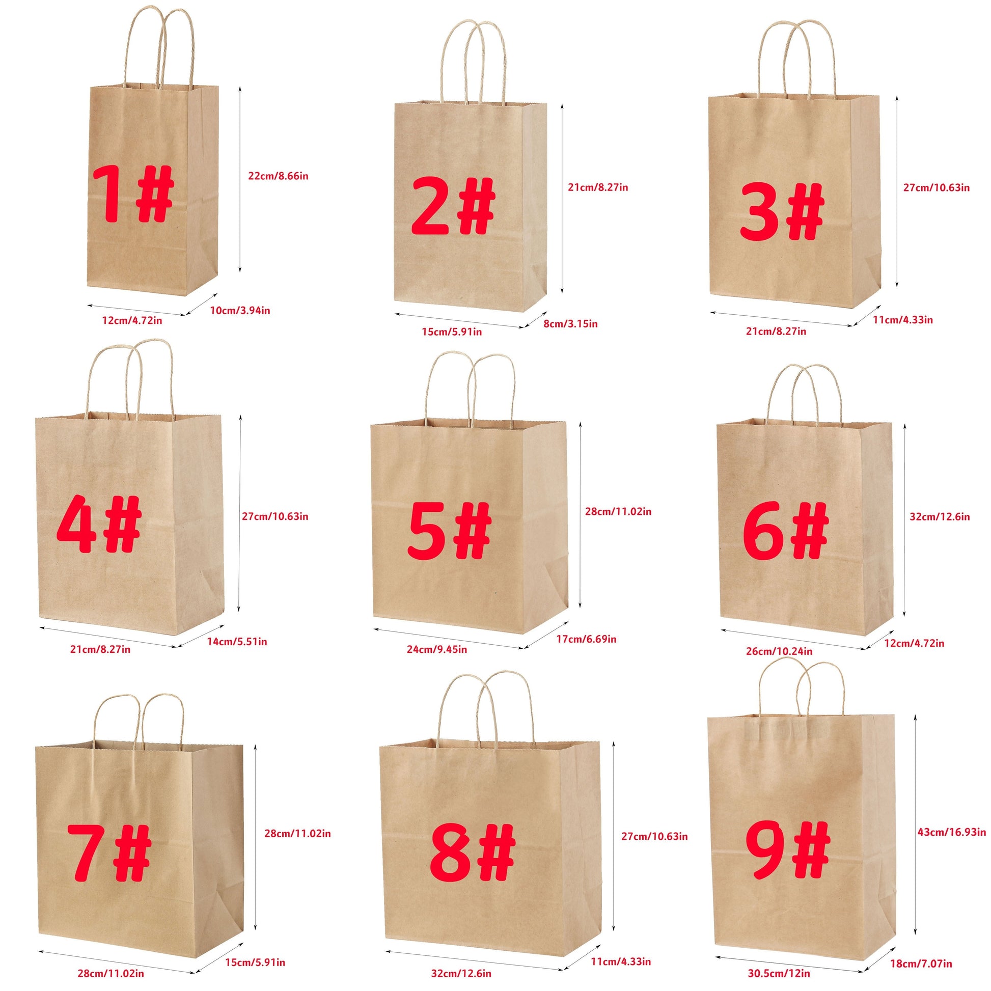Bolsas de papel Kraft a granel para regalos en diferentes tamaños para compras minoristas y embalaje