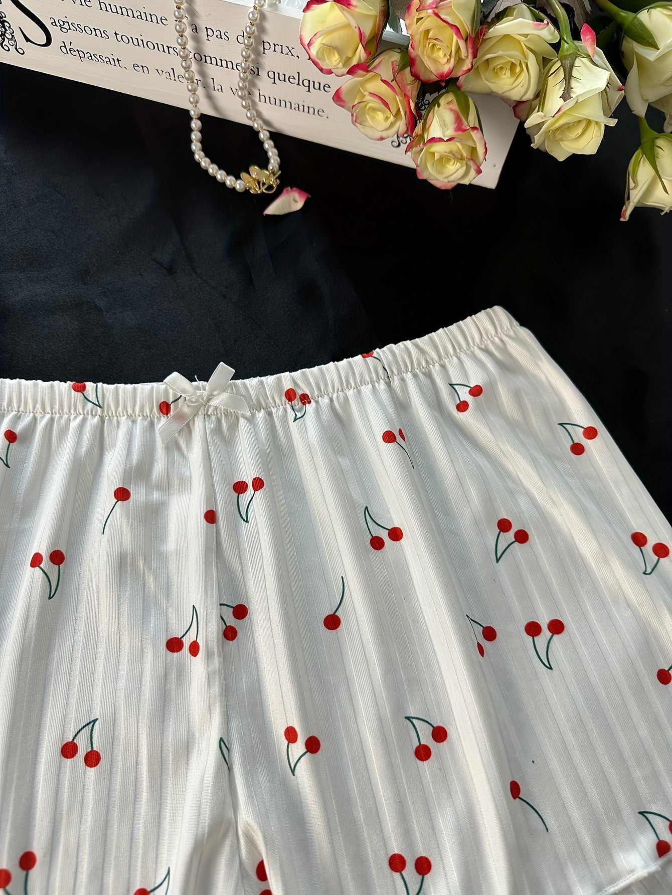 Conjunto de ropa de dormir con estampado de cerezas para mujer, top tipo camisón y pantalones cortos, ropa de descanso
