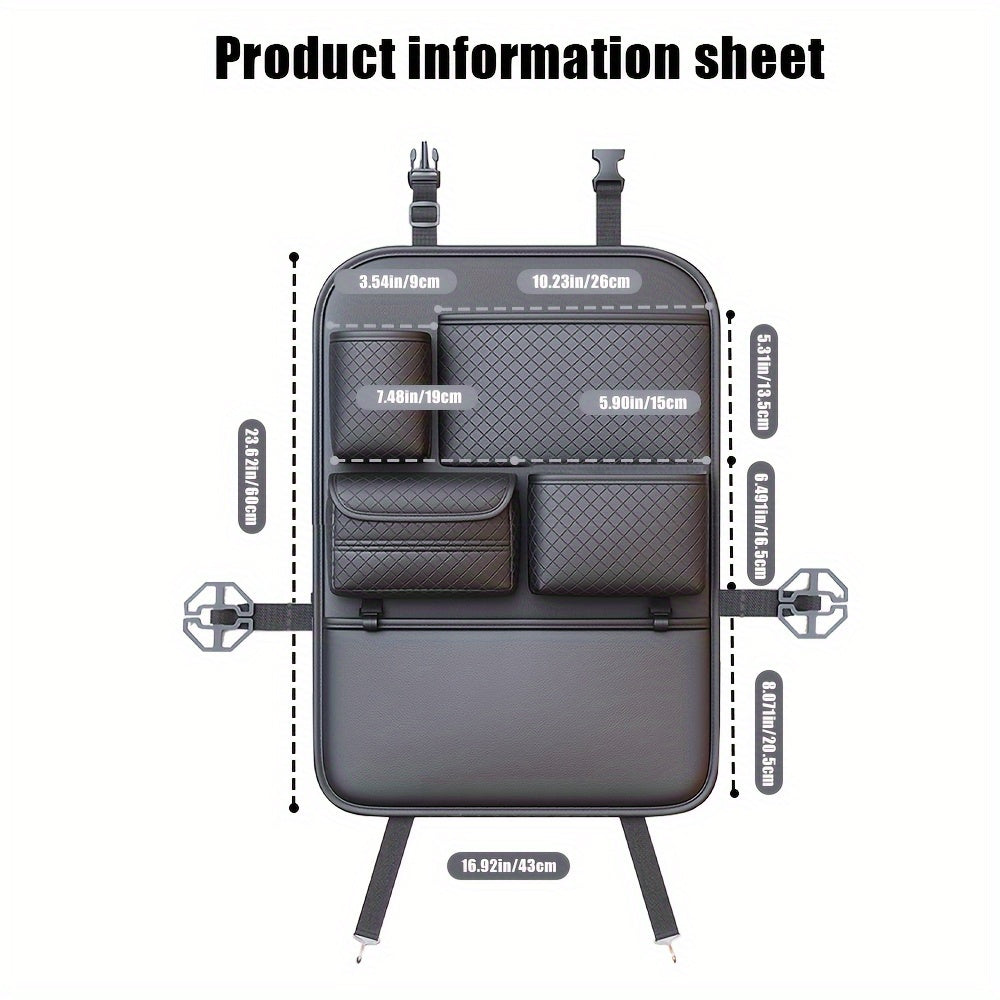 Organizador de respaldo para asiento de coche de cuero sintético negro con múltiples compartimentos de almacenamiento