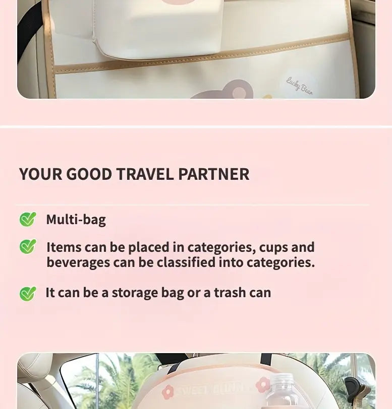 Bolsa de almacenamiento trasera para asiento de coche con diseño de dibujos animados, organizador multifuncional con cojín