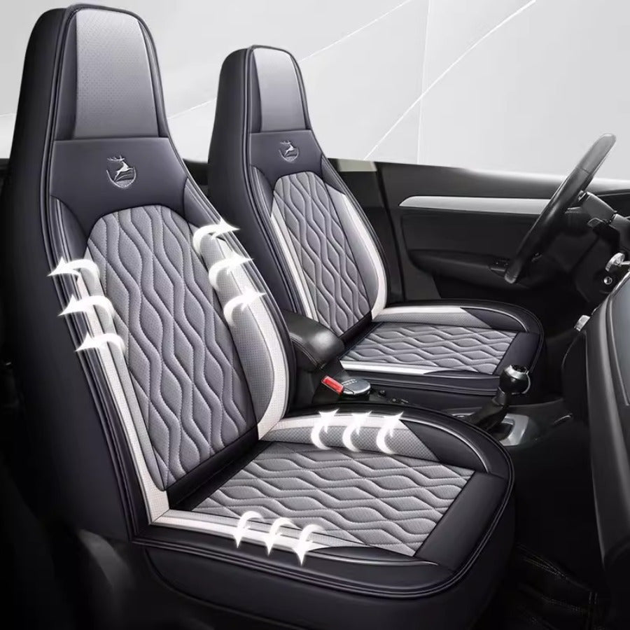 Juego de fundas para reposacabezas transpirable de cobertura completa en azul-gris para cojín de asiento de coche