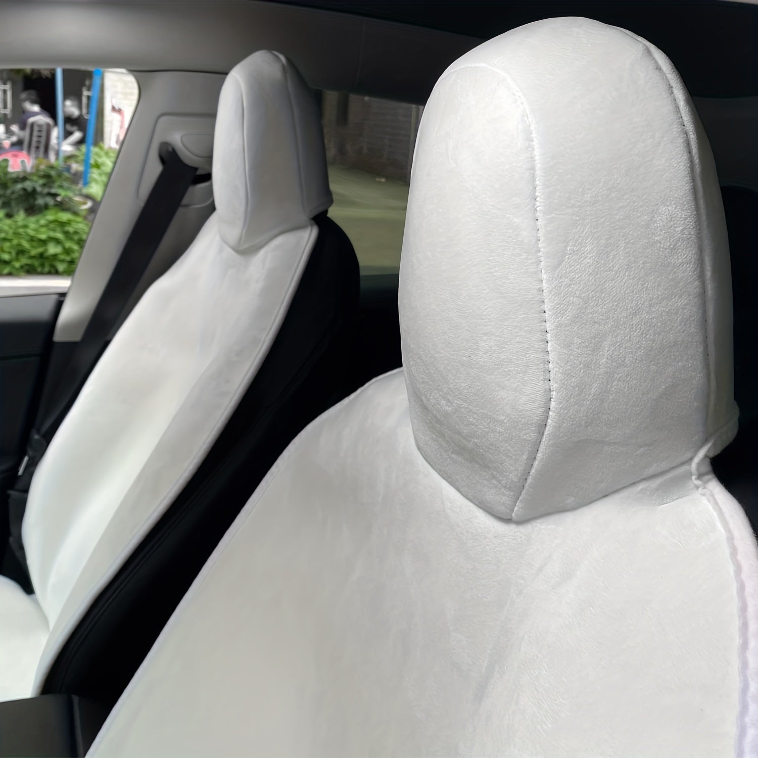 Cojín para asiento de coche de franela blanco y negro, instalación universal, sin arrugas