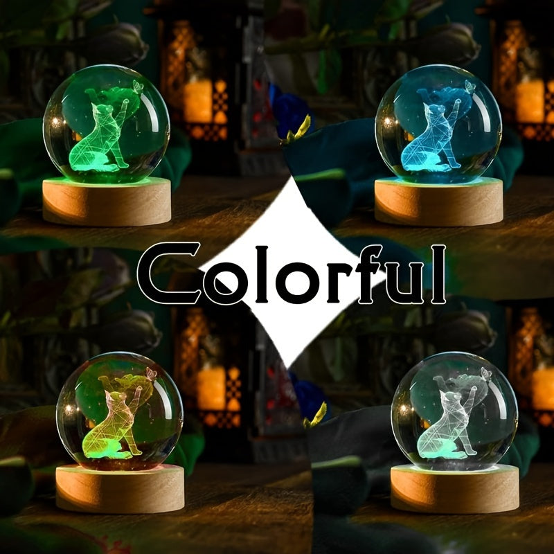 Lámpara de noche para gatos con bola de nieve en base de madera de 5.99cm para amantes de los gatos, regalo