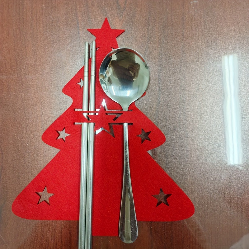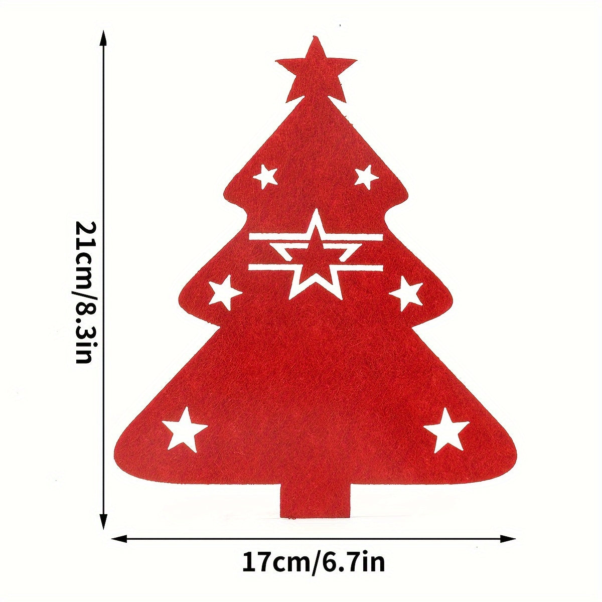 Juego de cubiertos con temática navideña con 12 piezas en bolsa con forma de árbol, incluyendo salvamanteles y decoración para la mesa