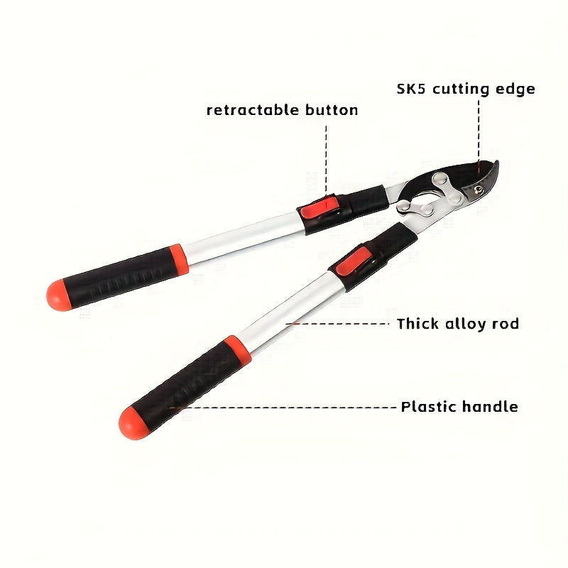 Tijeras de poda telescópicas clásicas con hoja de acero al carbono, antideslizantes y ambidiestras