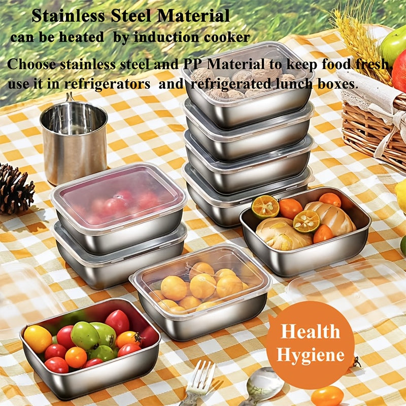 Juego de 5 recipientes de acero inoxidable con tapas para almacenamiento de alimentos, preparación de comidas y picnic
