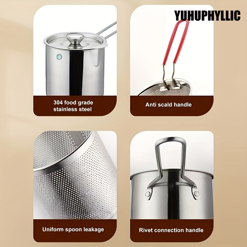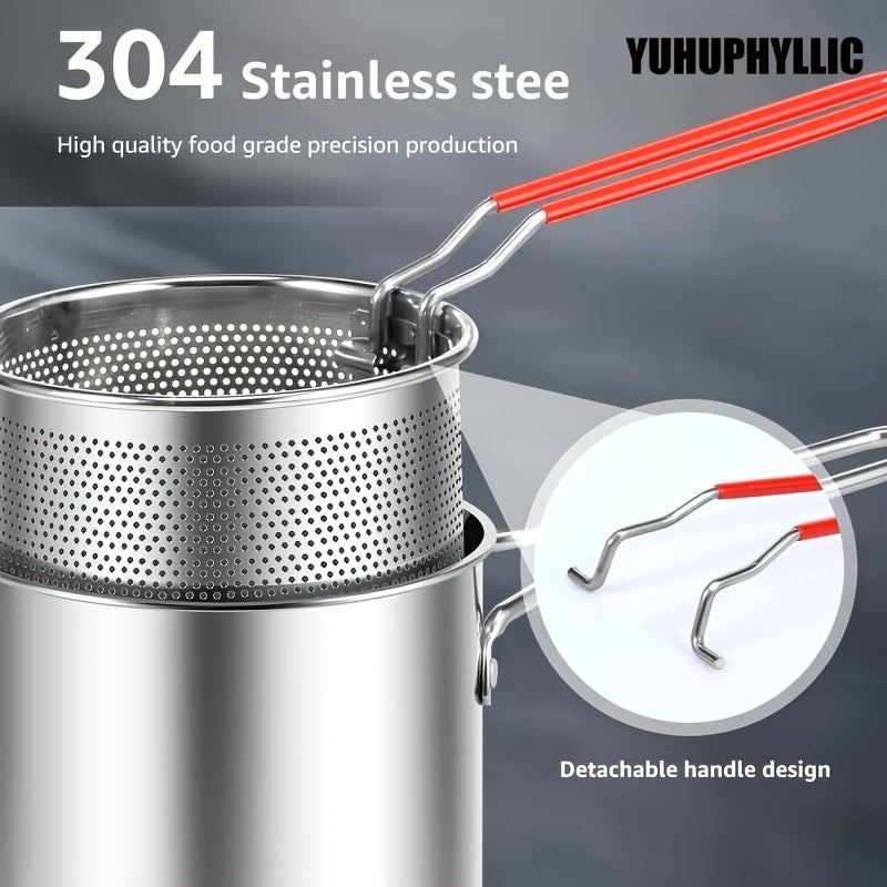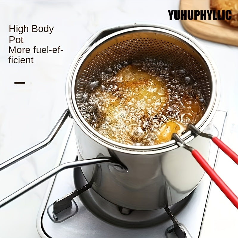 Freidora de acero inoxidable con soporte para filtro para papas fritas crujientes, pescado, pollo