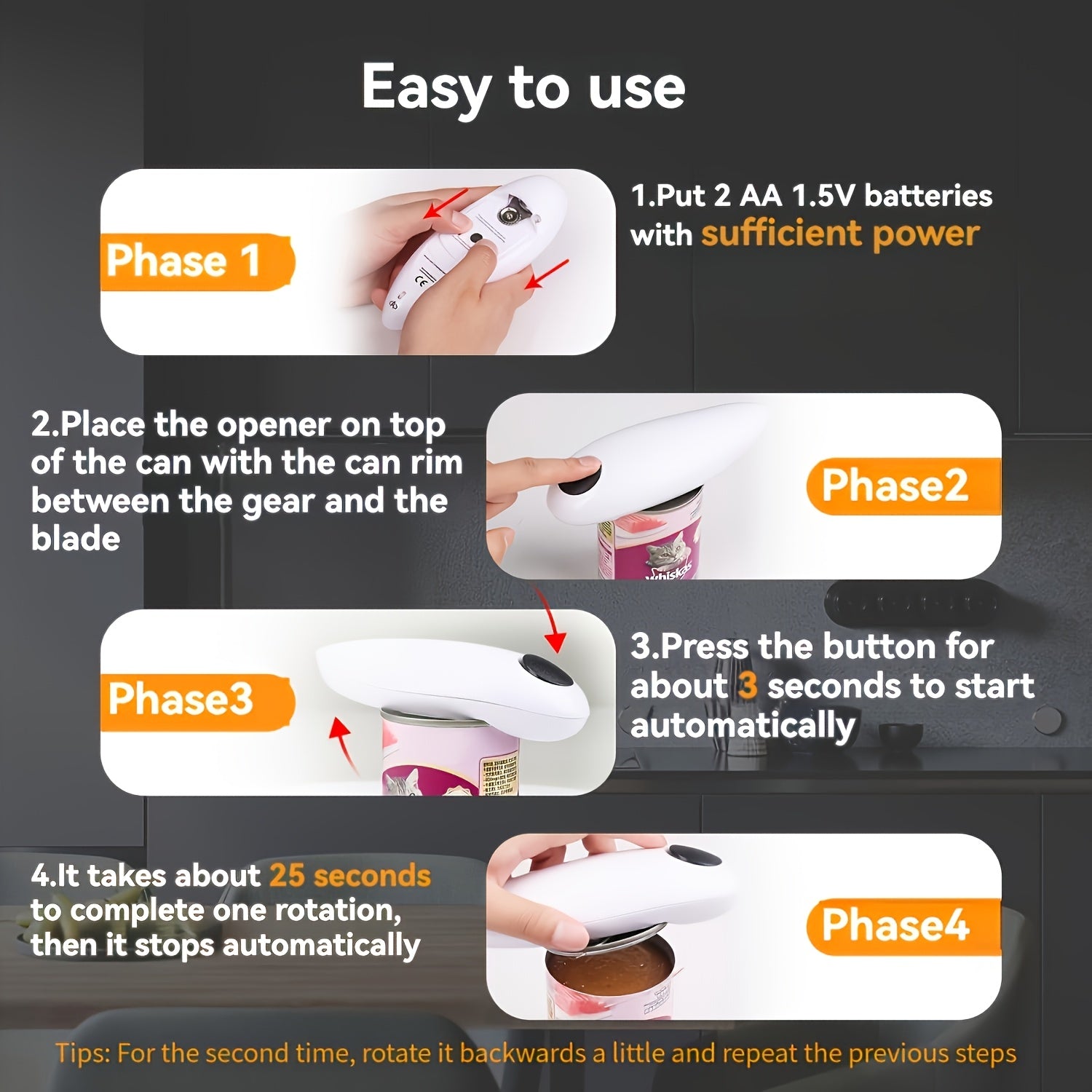 Abrelatas eléctrico compacto inalámbrico con apagado automático, borde seguro, funcionamiento con batería