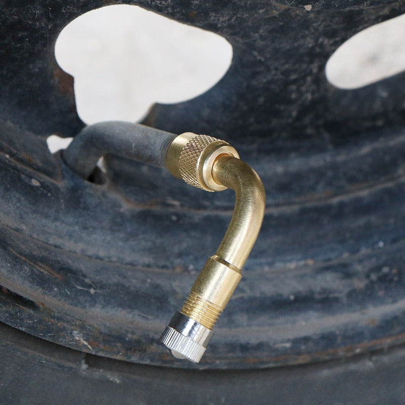 Extensión de válvula de neumático de cobre con curva de 90 grados para bicicleta y motocicleta