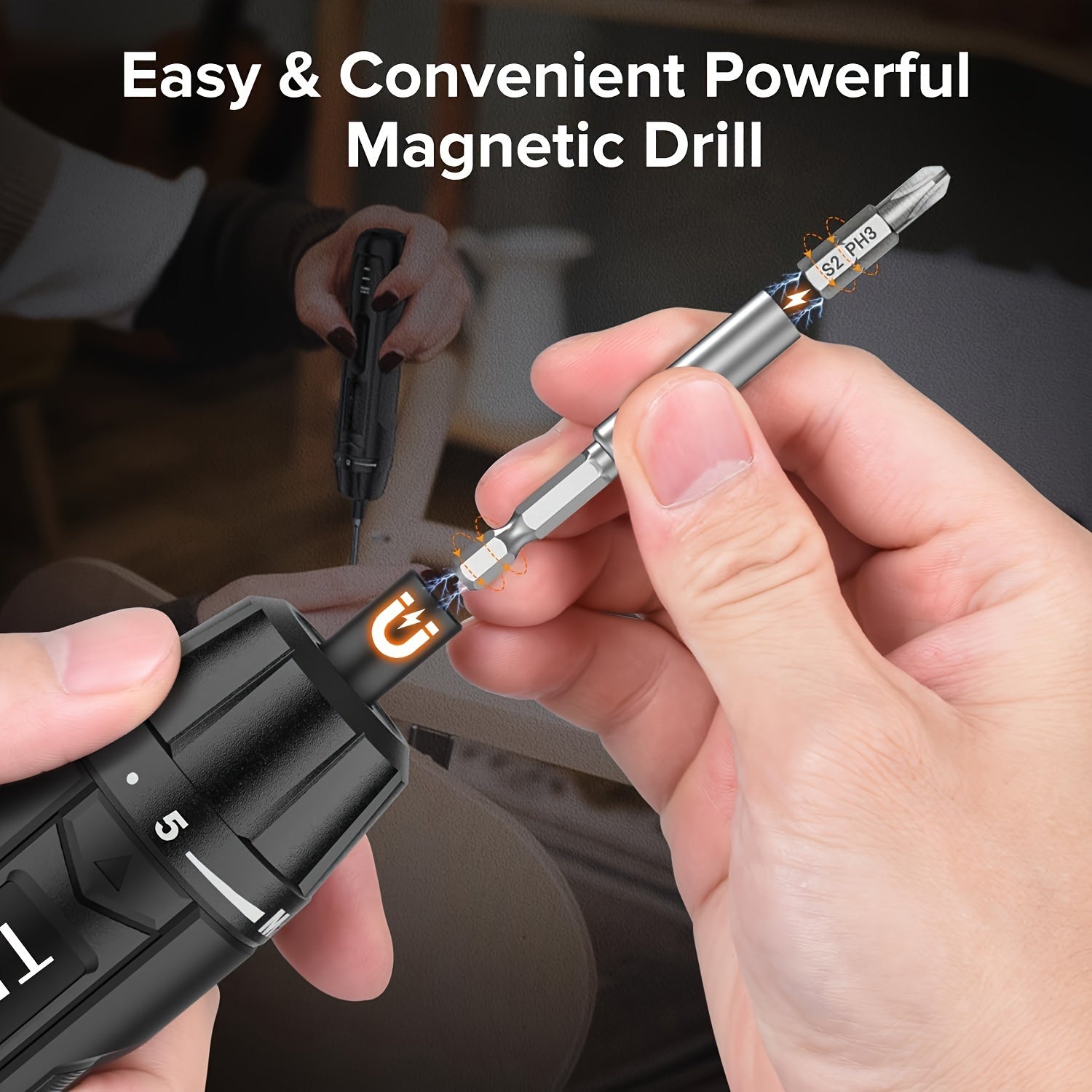 Juego de destornillador eléctrico inalámbrico con batería de litio de 2000mAh, carga USB, mango de goma, broca magnética, par máximo de 5N.m