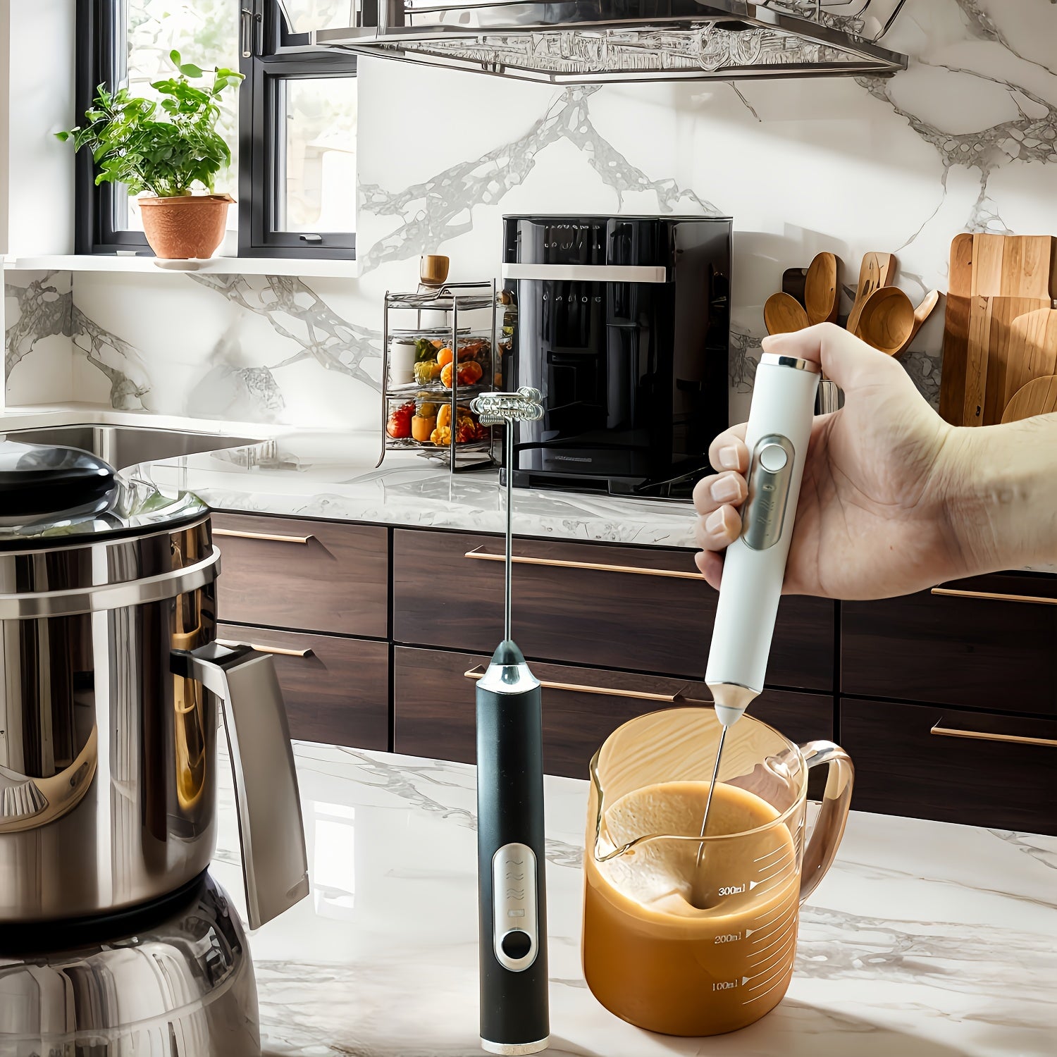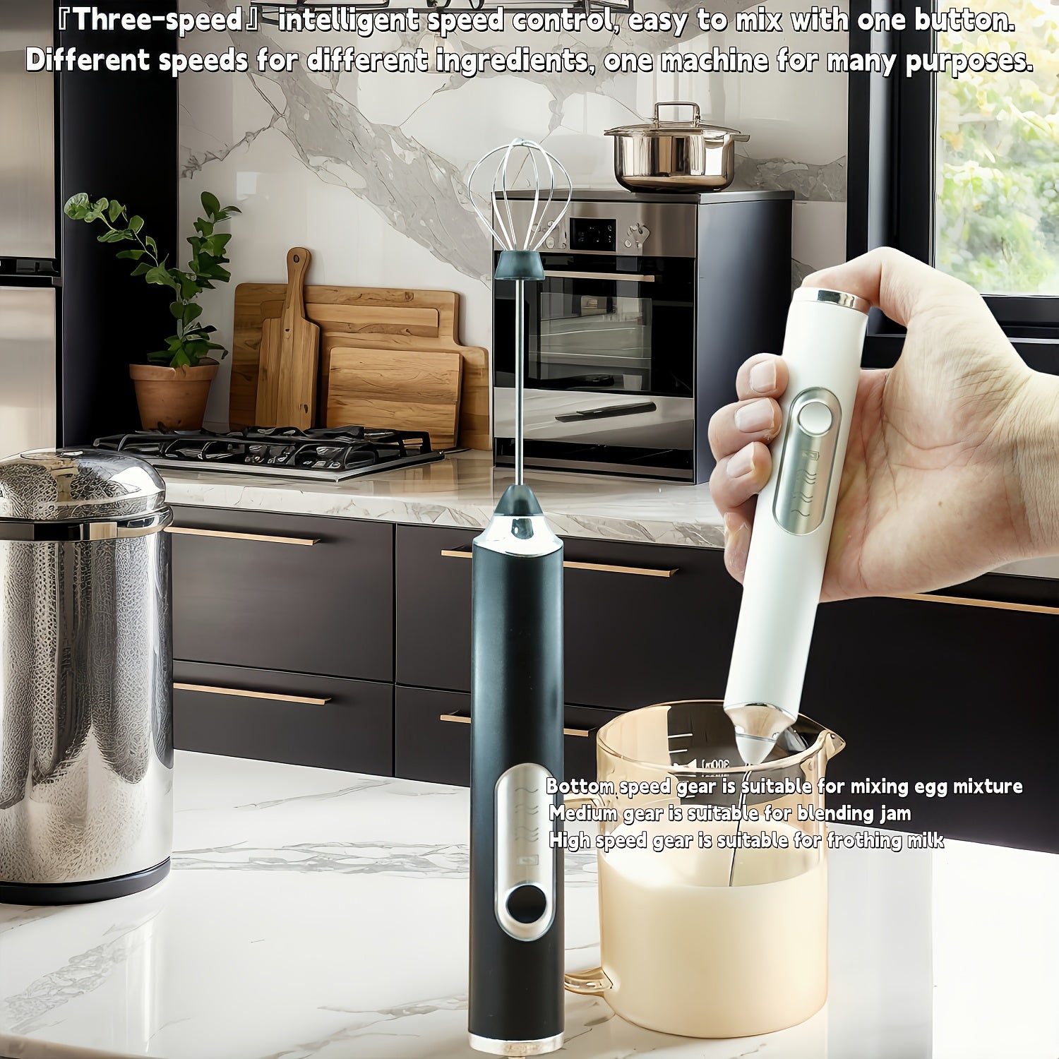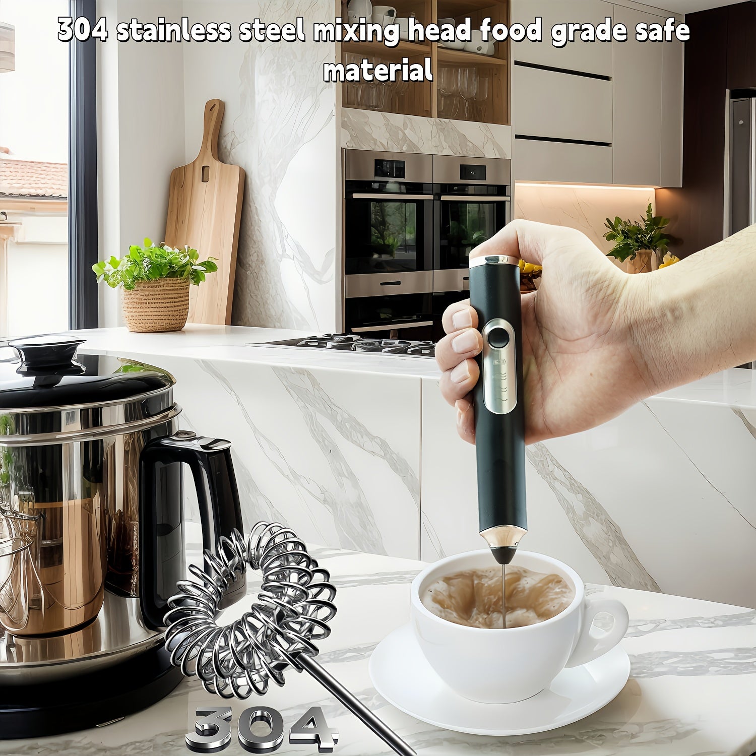 Espumador de leche inalámbrico, batidora eléctrica portátil, mini, de 3 velocidades, recargable, de acero inoxidable