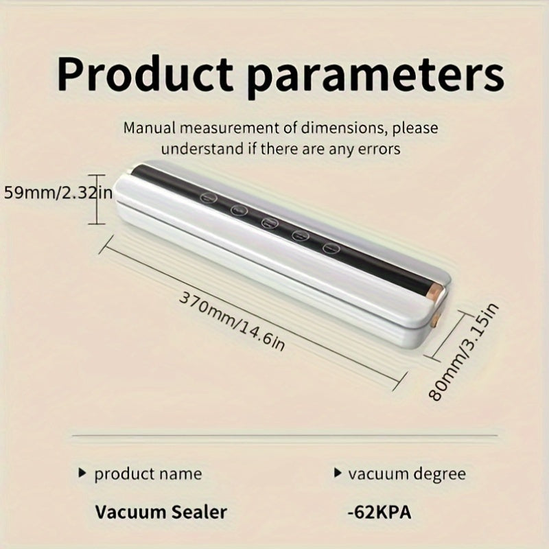 Selladora de vacío inalámbrica con alta potencia de succión, recargable por USB, conservación de alimentos 1500mAh