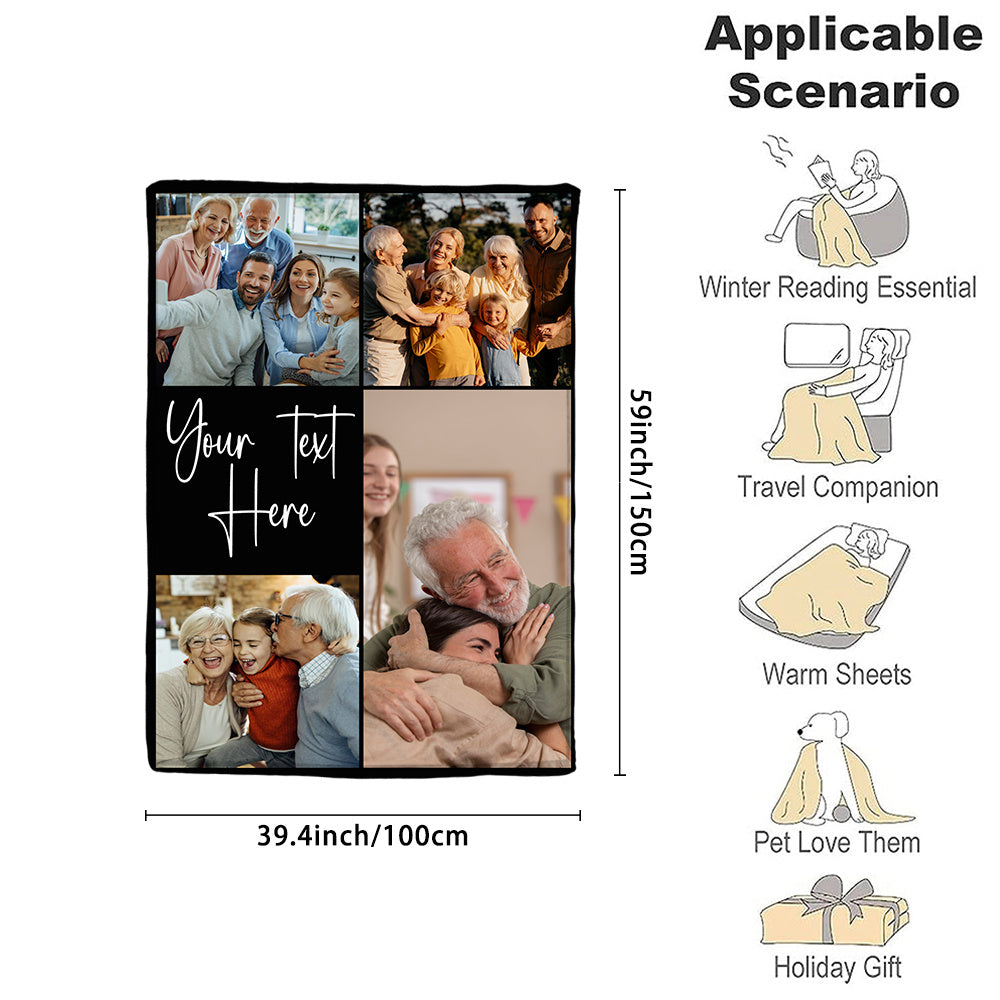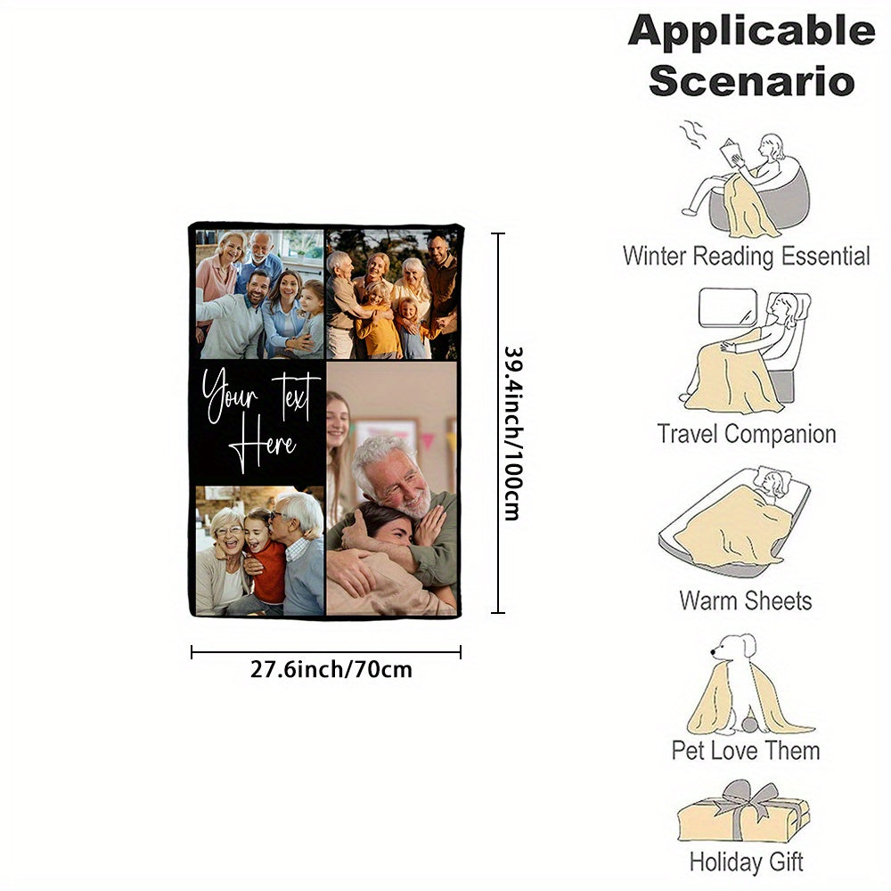 Manta de franela personalizada con foto y mensaje para familia y regalos