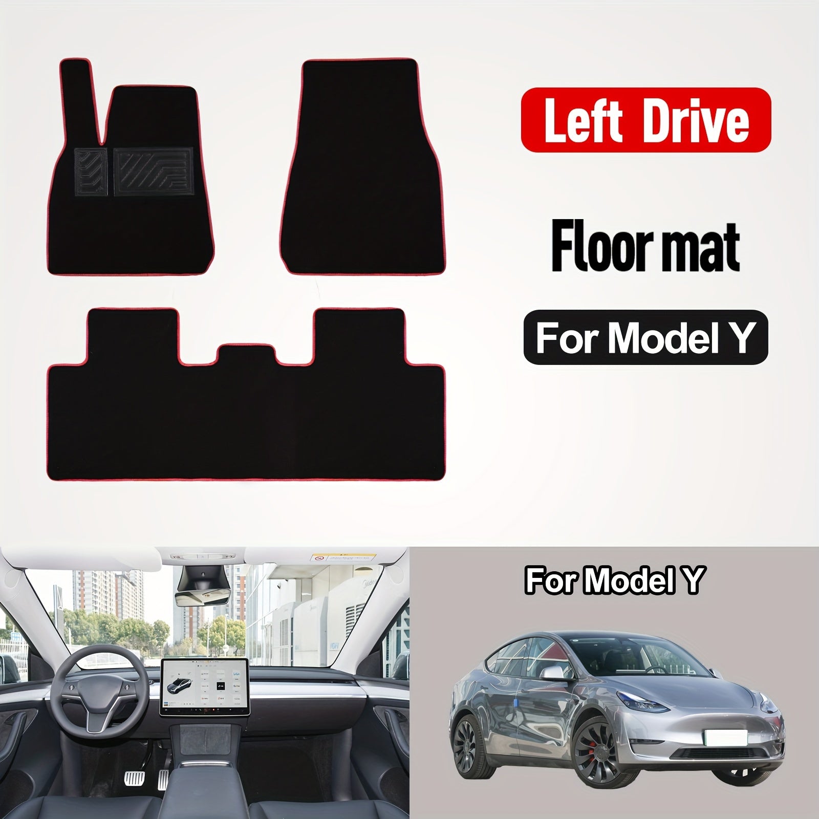 Custom All-Weather Carpet Floor Mats for Tesla Model Y Left Drive Red Edging