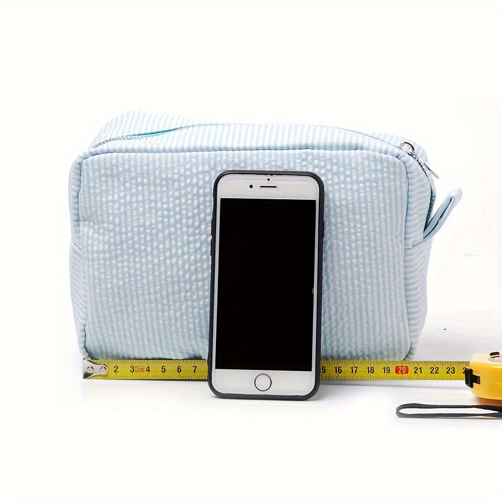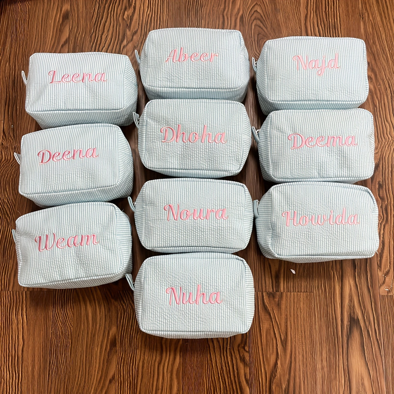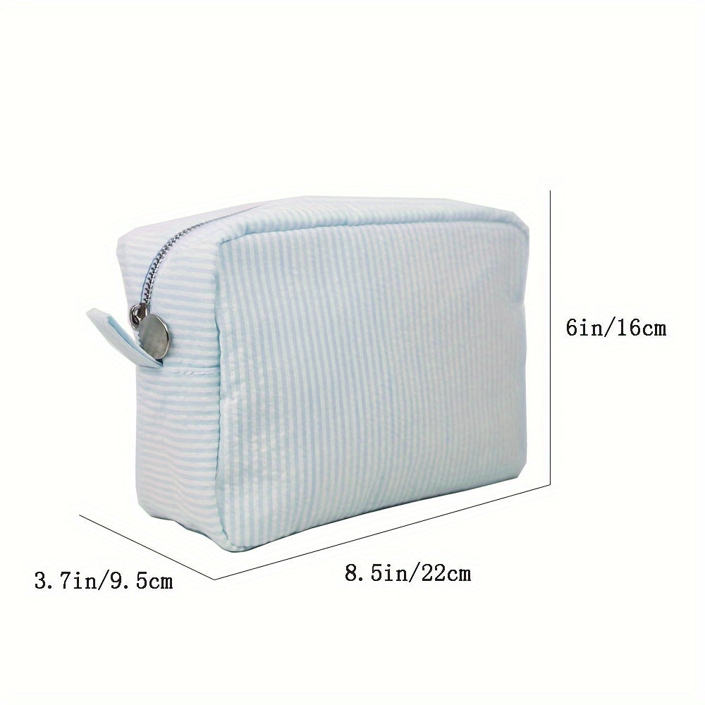 Neceser de maquillaje de lona a rayas bordada para niñas y adolescentes, azul, con cremallera, organizador de viaje
