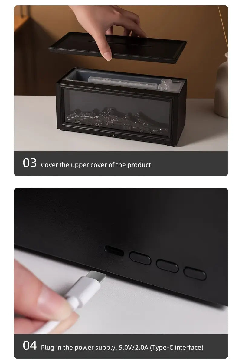 Humidificador de llama de chimenea de escritorio con control remoto 280ml luz nocturna temporizador