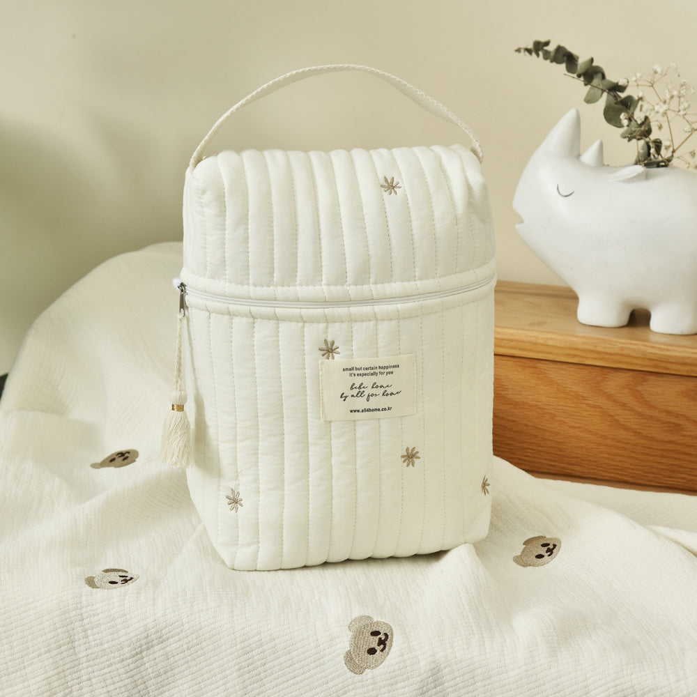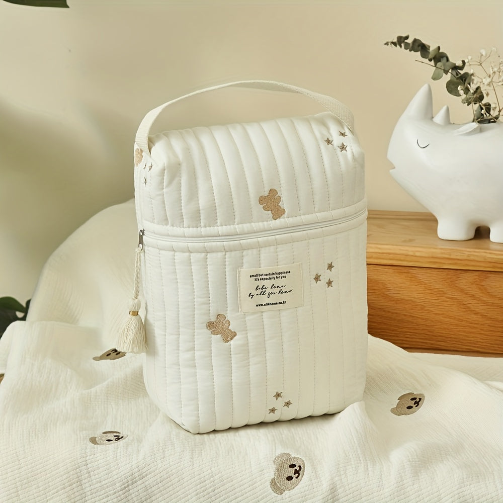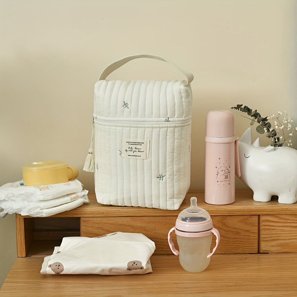 Bolsa de pañales de algodón con bordado para cochecito de bebé y almacenamiento para madre