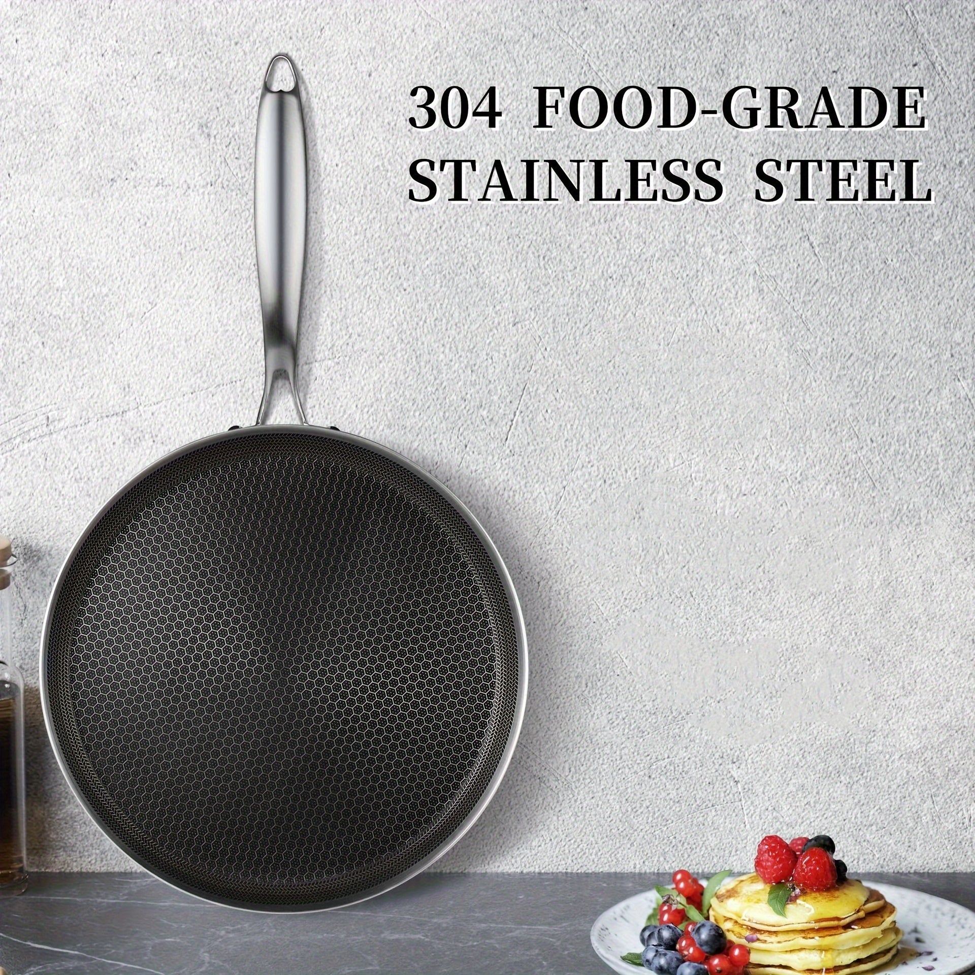 Sartén de acero inoxidable antiadherente con textura de panal para cocción por inducción