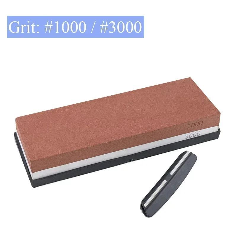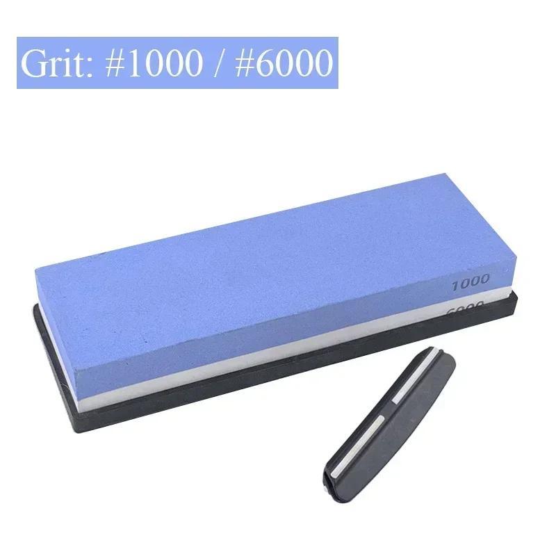 Juego de piedras de afilar de doble cara con guía de ángulo para cuchillos, herramientas y base antideslizante