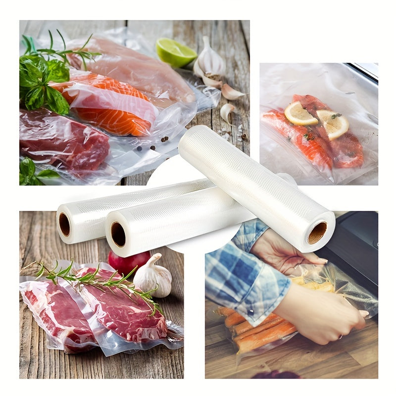 Rollos y bolsas selladoras de vacío duraderos, de grado alimenticio, para mantener la frescura, con envoltorio engrosado
