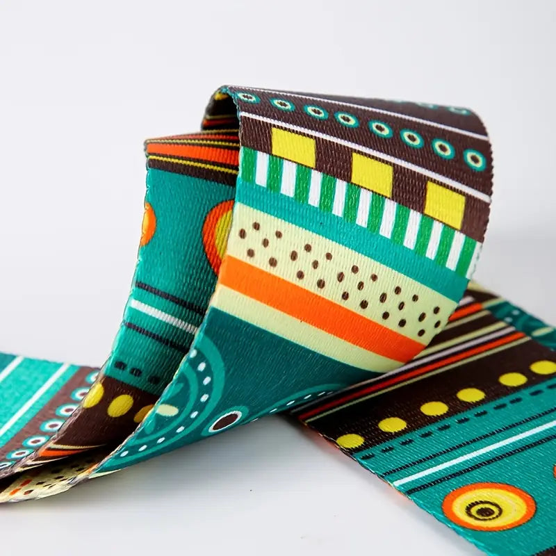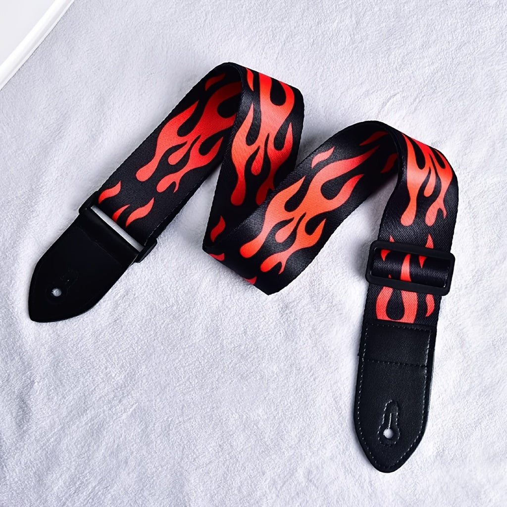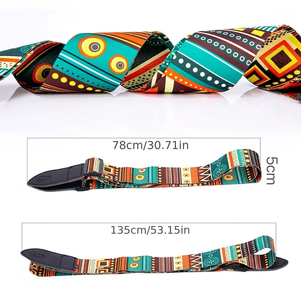 Correa de guitarra de cuero sintético ajustable con patrón vibrante en rosa, amarillo y negro para guitarra acústica, eléctrica y bajo