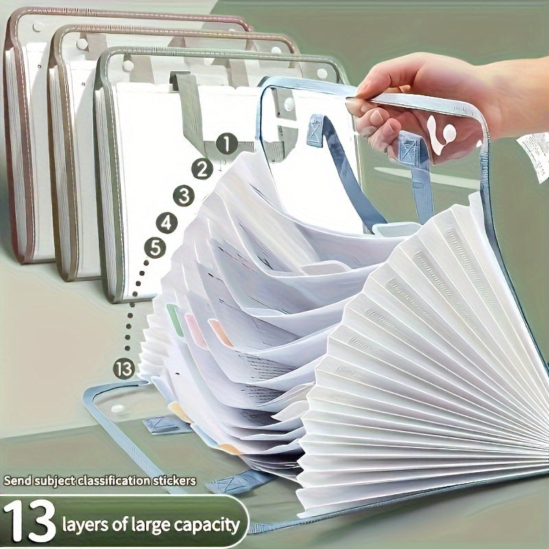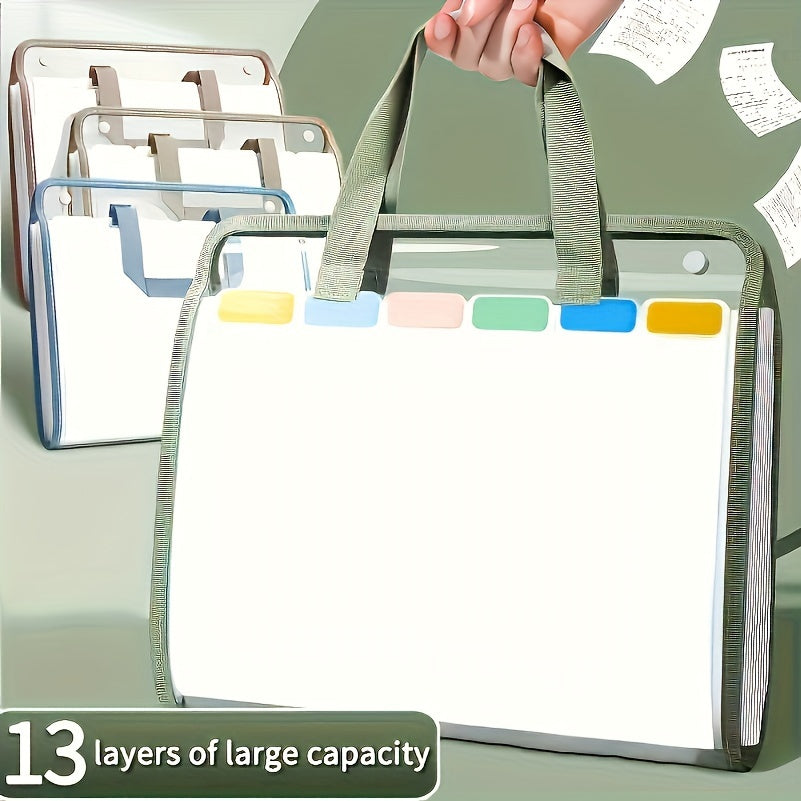 Organizador de archivos A4 de PVC impermeable con 13 bolsillos, portátile blanco para documentos para oficina, escuela y hogar