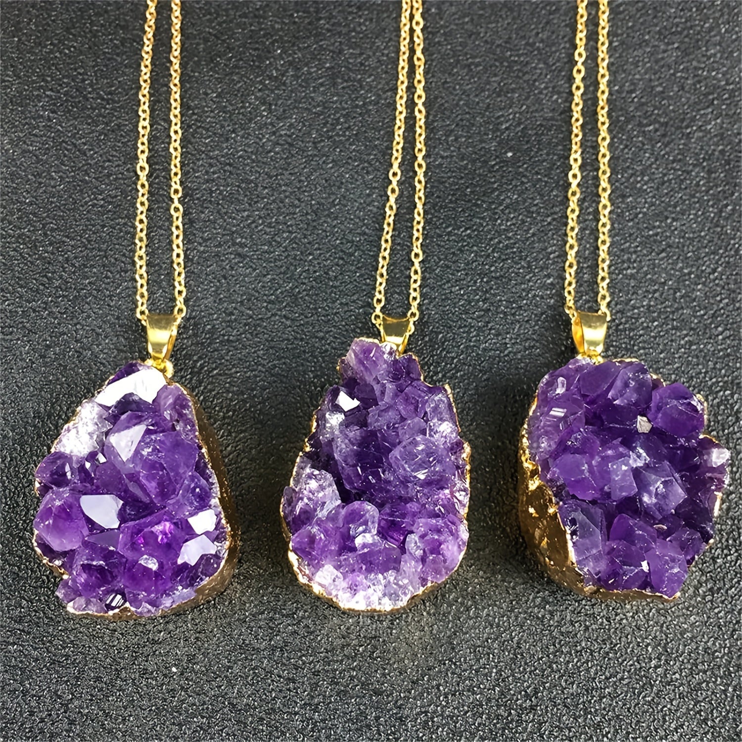 Collar con colgante de cristal de amatista en baño de oro de 18K con encanto de roca natural